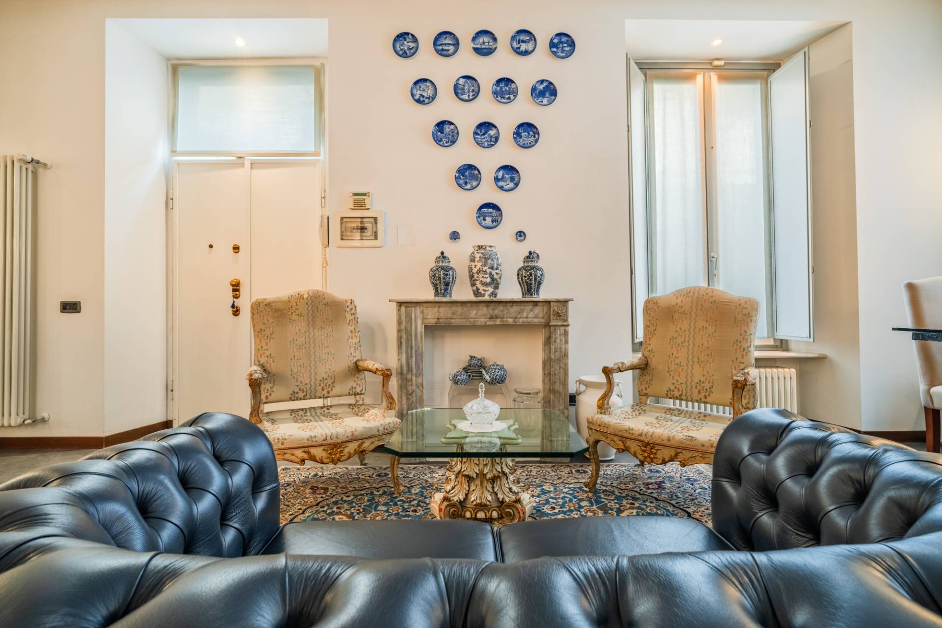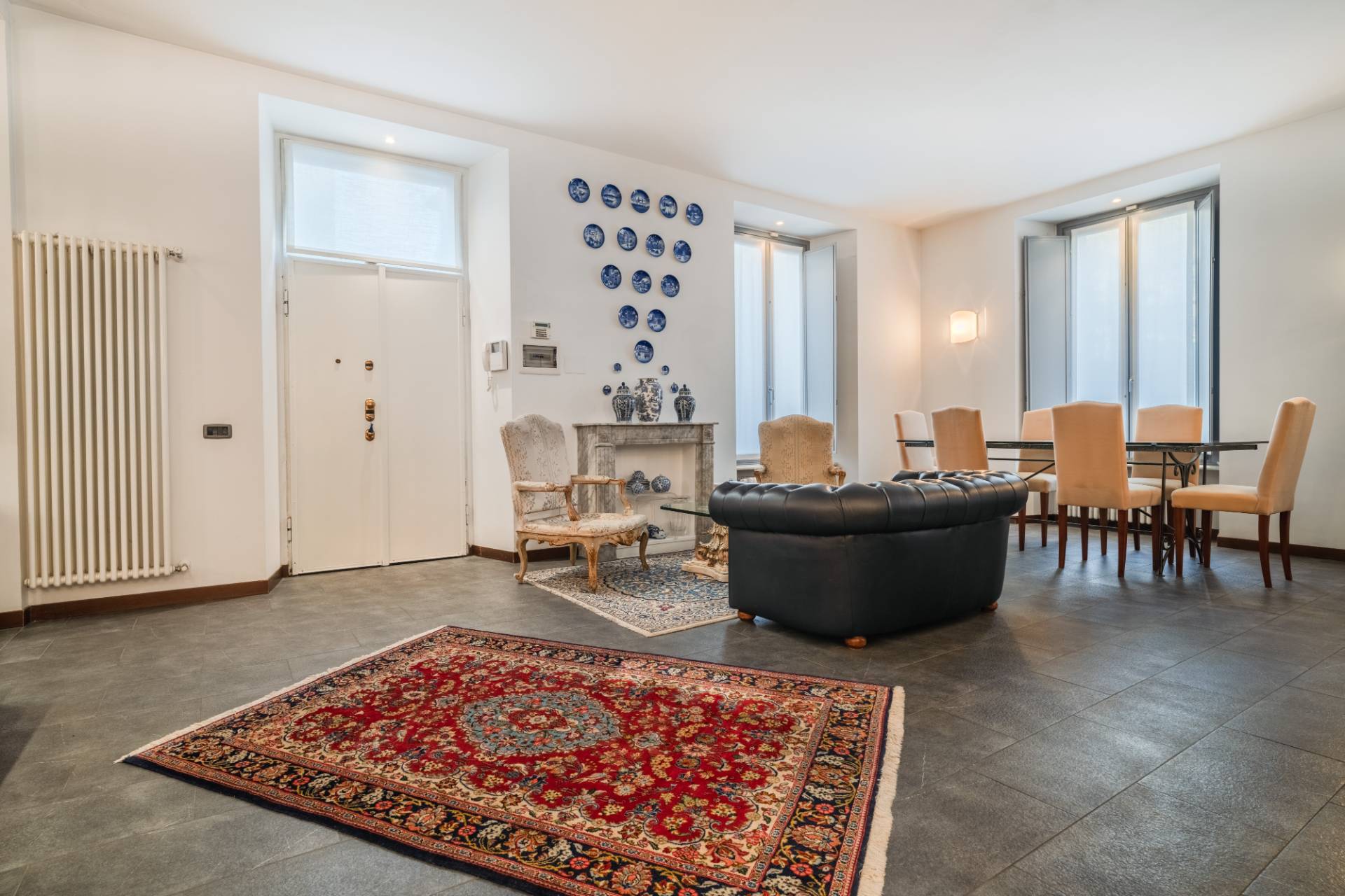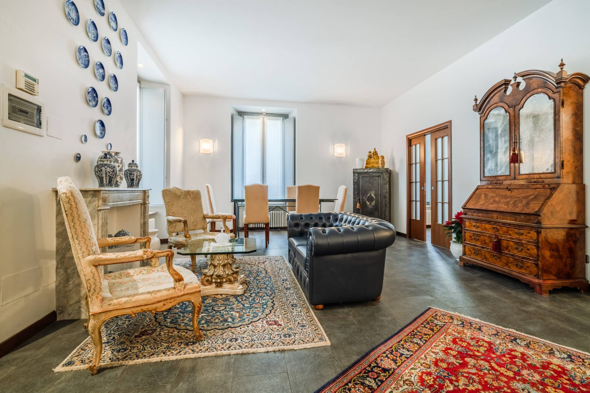 Lingresso si apre su un ampio salone di rappresentanza, con soffitti alti oltre 3,30 metri, che conferiscono profondit agli spazi.