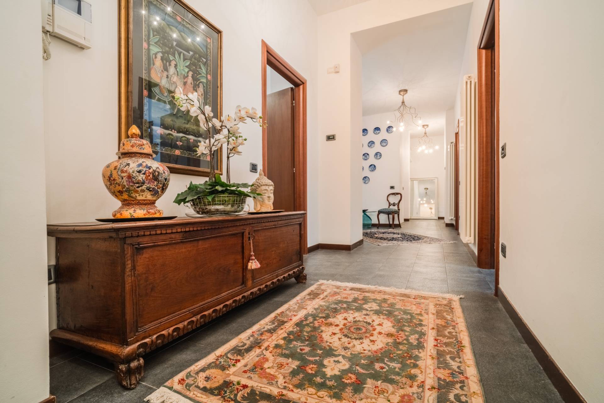 La propriet dispone inoltre di doppio ingresso, una caratteristica rara e preziosa che consente, se desiderato, di suddividere lappartamento in due unit abitative indipendenti, ideale per famiglie numerose o per chi desidera una zona dedicata a ospiti o studio professionale.
