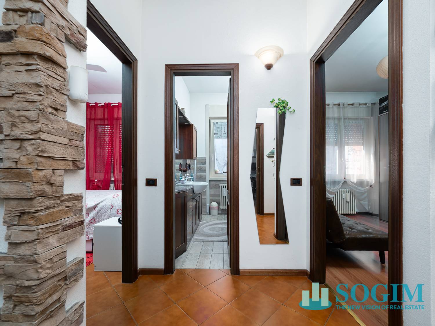 L'appartamento, libero su due lati, gode di una doppia esposizione nord- sud beneficiando di un'ottima luminosit naturale per diverse ore della giornata ed composto dall'ingresso che si apre su un piccolo atrio il quale separa longitudinalmente l'area living dalla zona notte, conferendo privacy e riservatezza agli ambienti deputati al riposo.