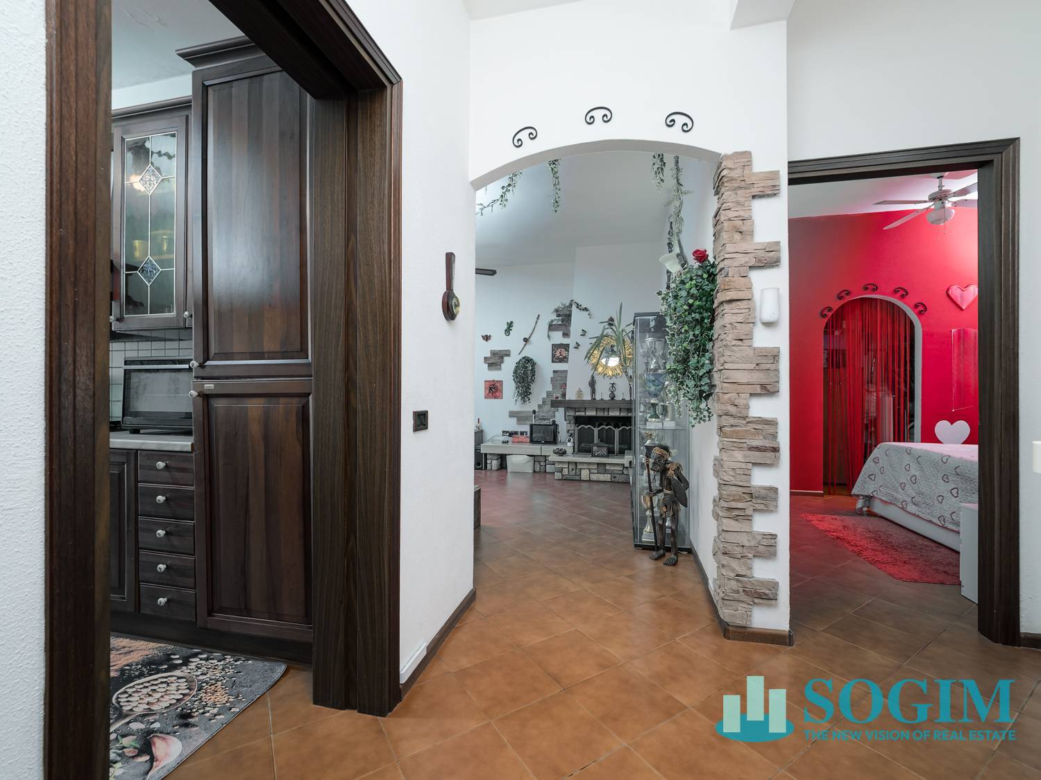 Dal disimpengo di ingresso si accede alla cucina abitabile sapientemente attrezzata e funzionale, proseguendo poi verso l'ampio soggiorno impreziosito da un camino in pietra che rende ancor pi gradevole la permamenza entro le mura domestiche ed dotato di un balcone.