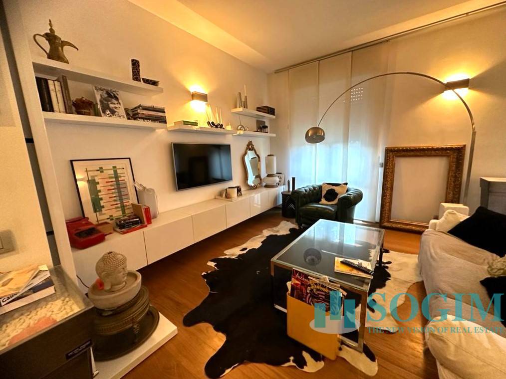 Lappartamento ha una doppia esposizione nord ovest ed composto dall' ingresso che si apre sul disimpegno che conduce alla cucina abitabile con accesso al balcone e all'ampio soggiorno con zona pranzo, anche esso con affaccio sul secondo balcone.