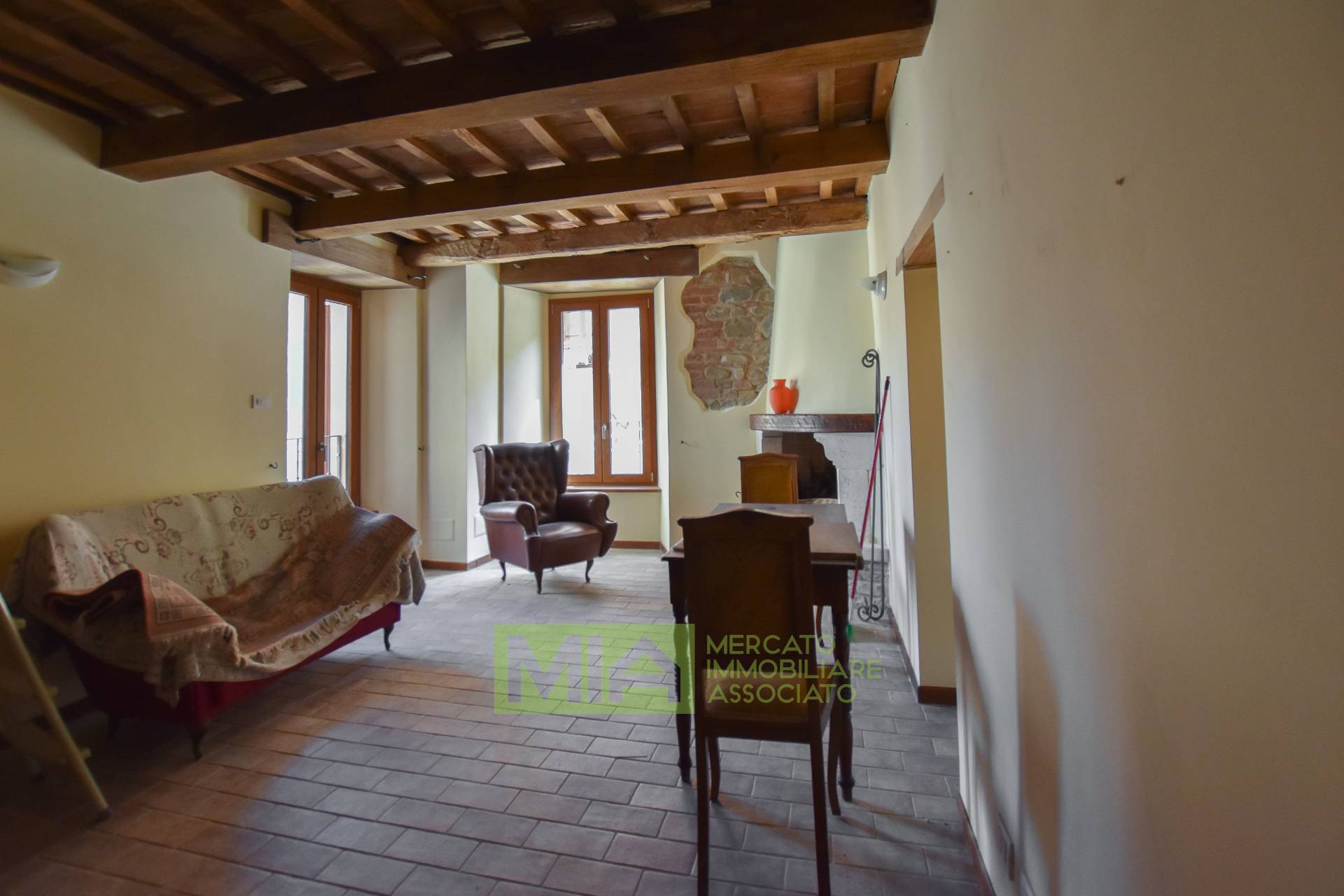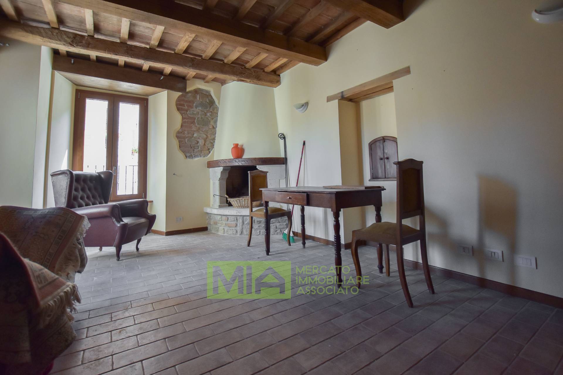 Al piano primo un ampio Salone con camino ed affaccio di pregio su Piazza Santa Caterina, oltre una grande e bellissima Cucina abitabile ed attrezzata.