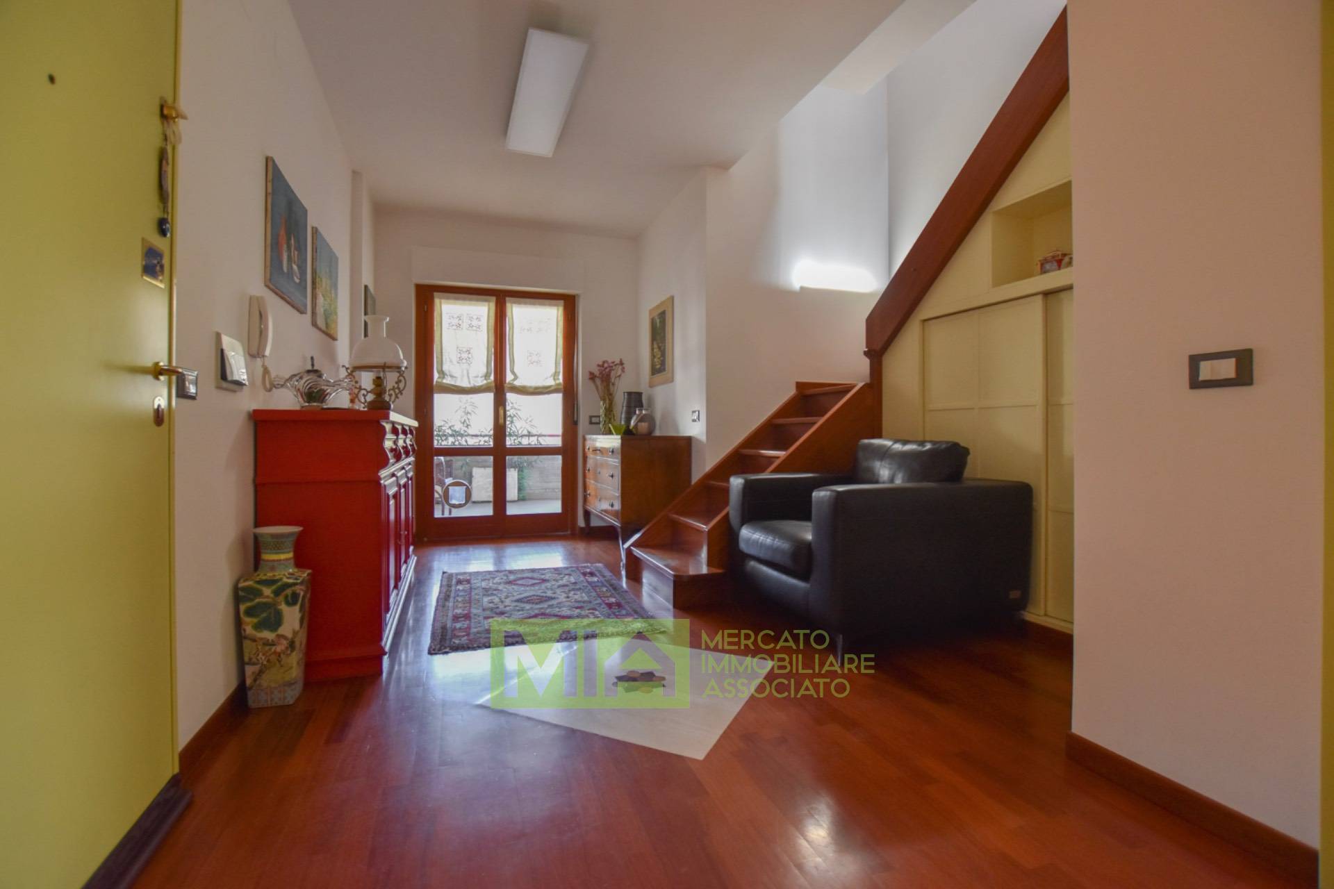 Ogni ambiente si distingue per le finiture di pregio, con splendidi pavimenti in parquet, ceramiche di alta qualit in bagno, infissi di eccellente fattura e una magnifica scala in legno che collega elegantemente i due livelli.