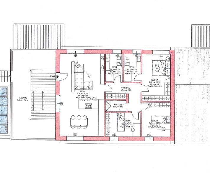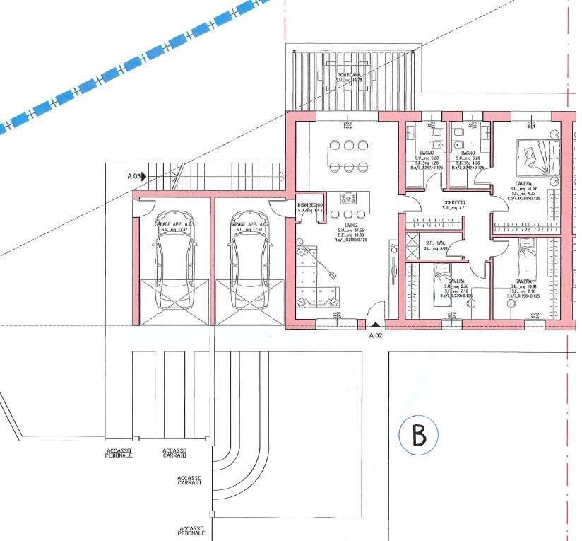 Attualmente in fase di costruzione, la sua realizzazione prevista per il 2025. L'immobile si estende su una superficie totale di 120 metri quadrati, distribuiti su un ampio soggiorno/cucina di circa mq 40, tre camere da letto e due bagni.