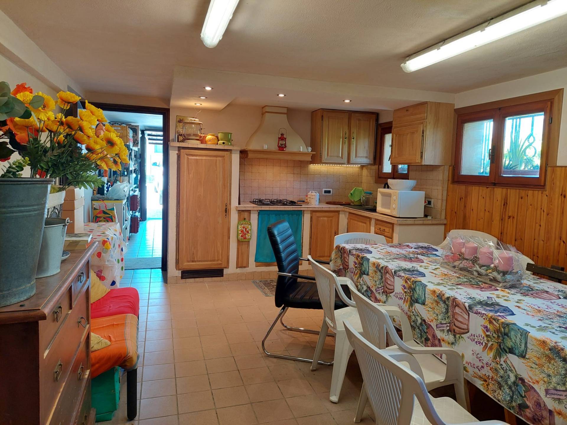 La cucina, a vista, moderna e completamente arredata, dotata di tutti gli elettrodomestici necessari.