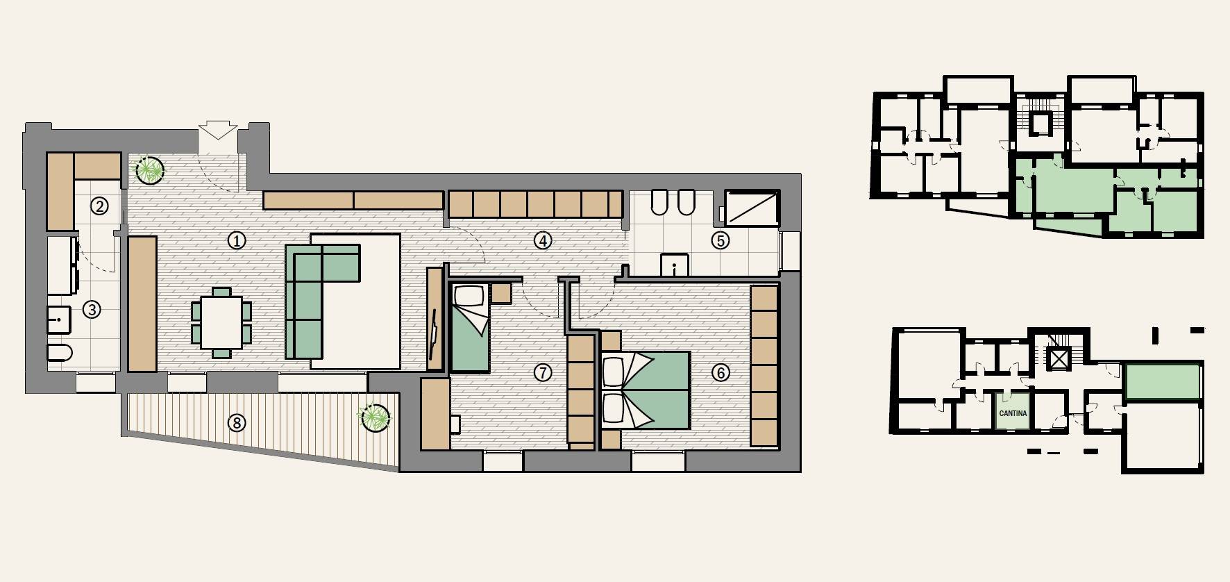 Servita da ascensore, l'unit posta al piano primo e presenta riscaldamento a pavimento, con impianto comune, alimentato da pannelli fotovoltaici, classe energetica A4. Al piano terra, presenti cantina e garage.