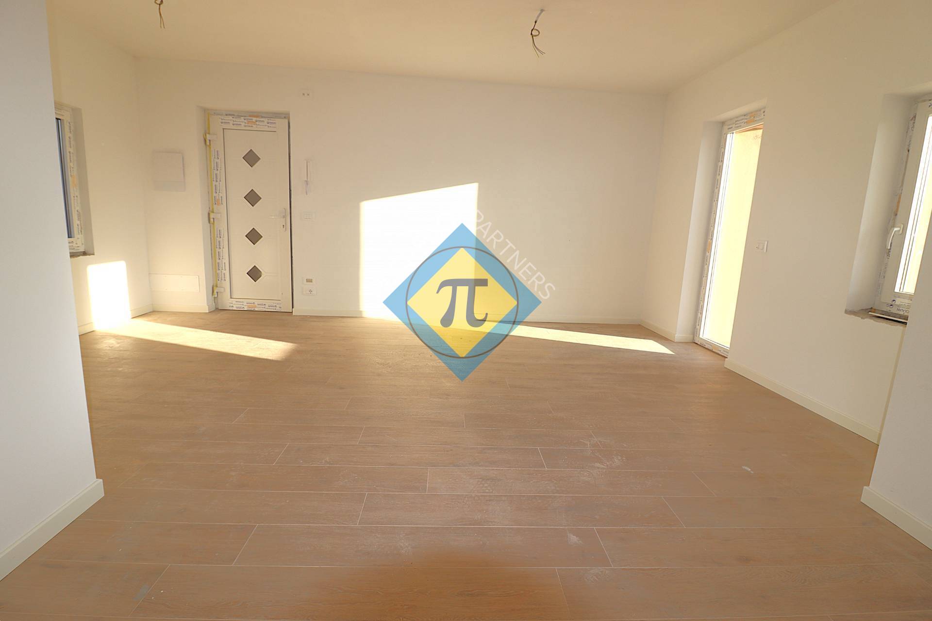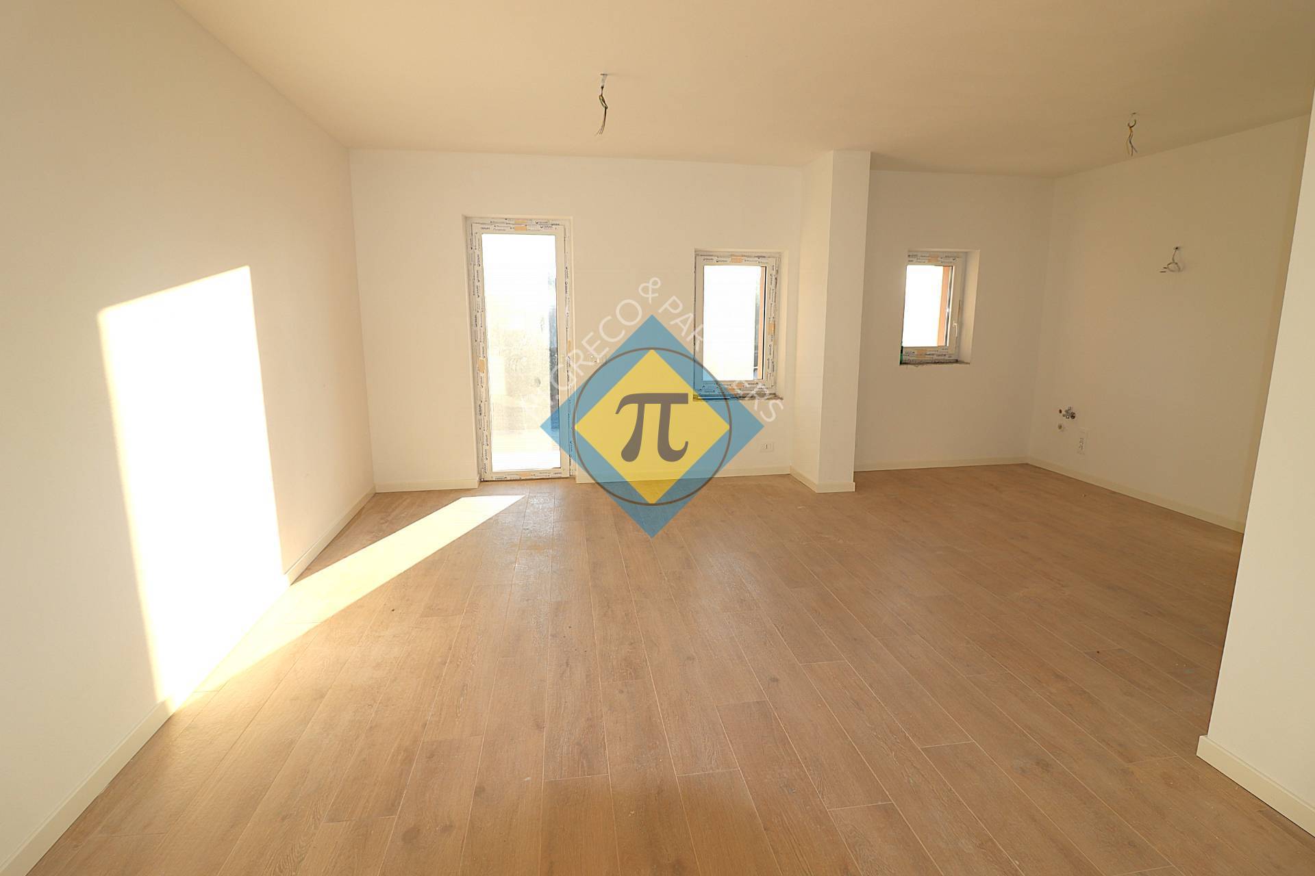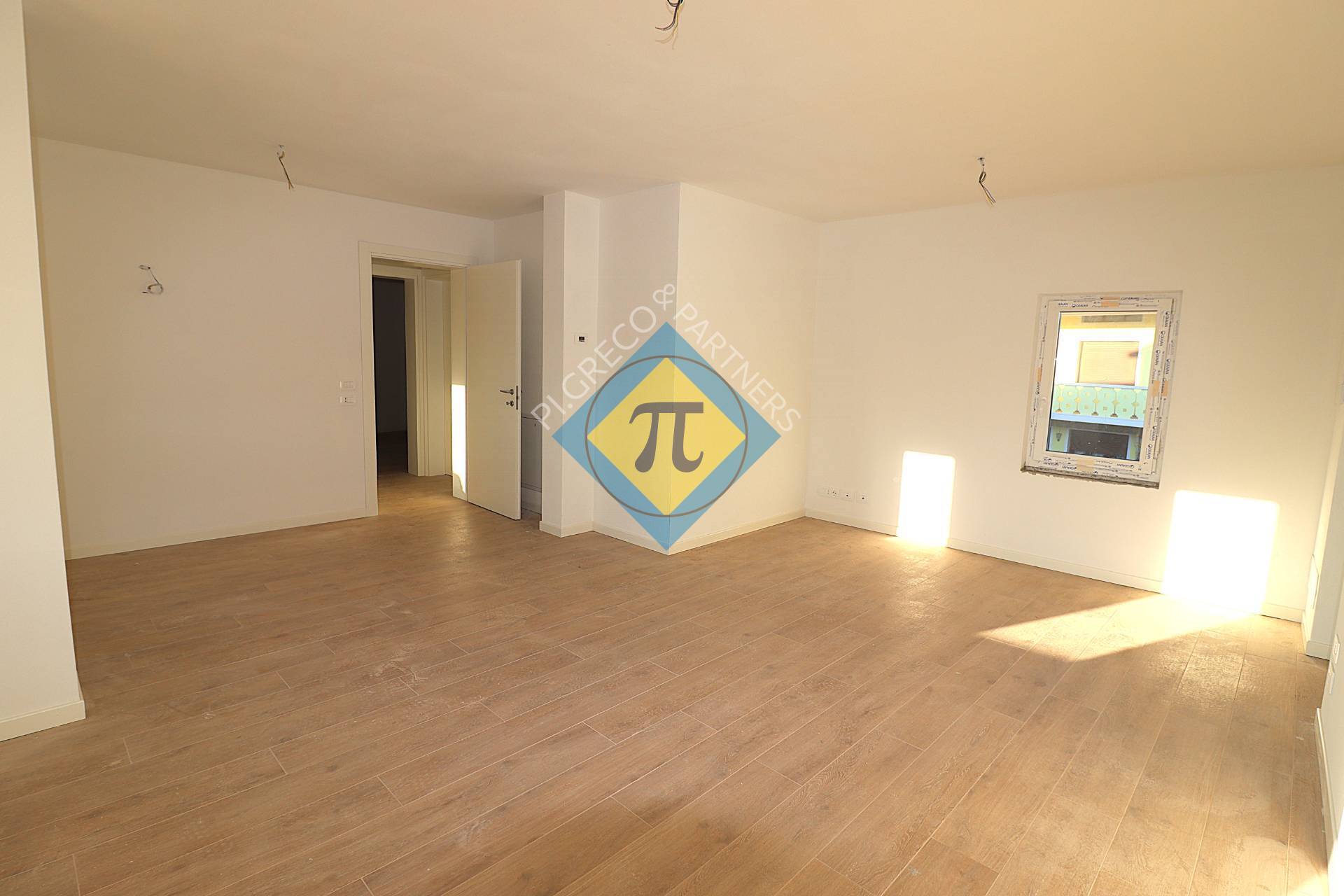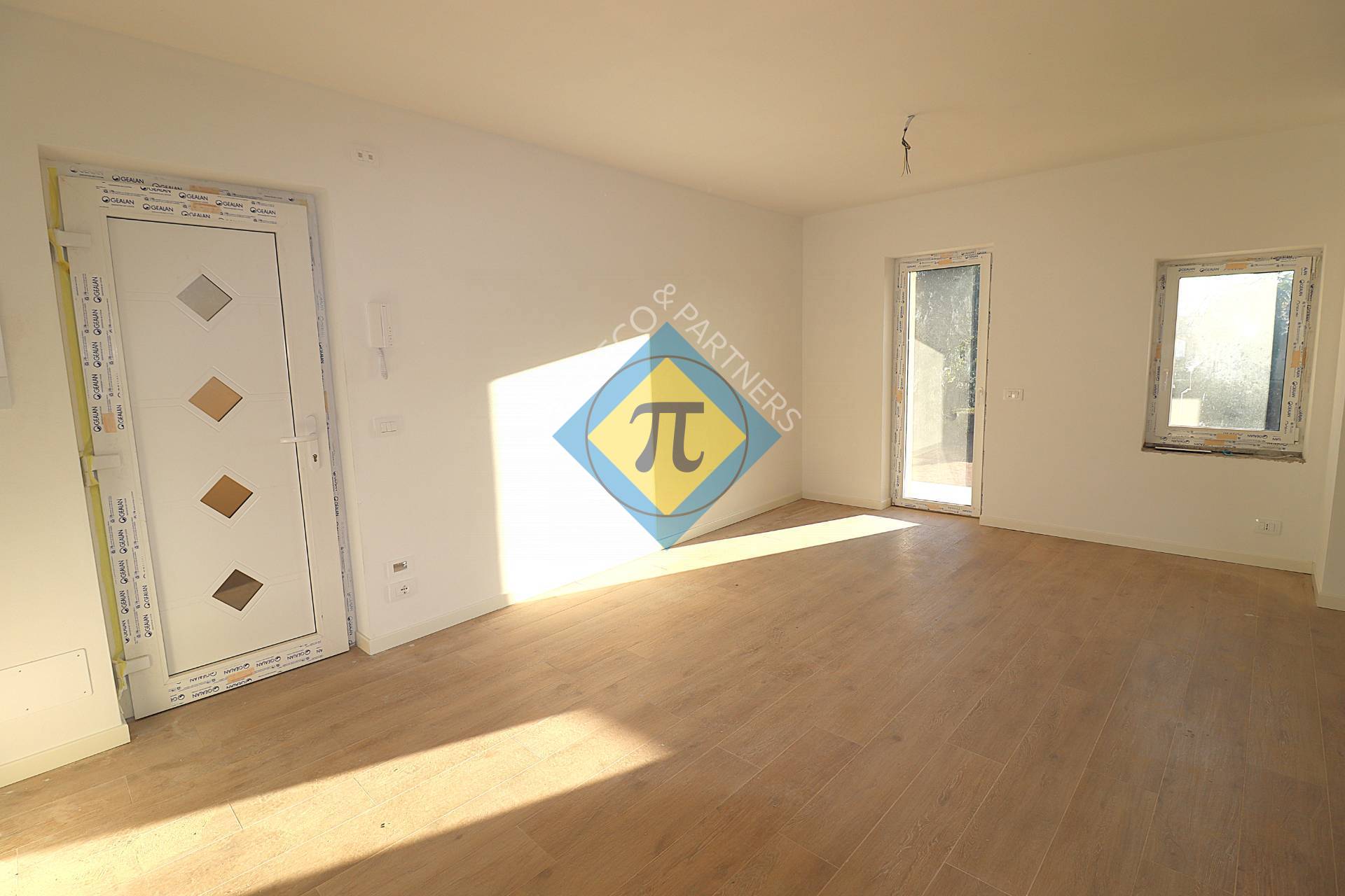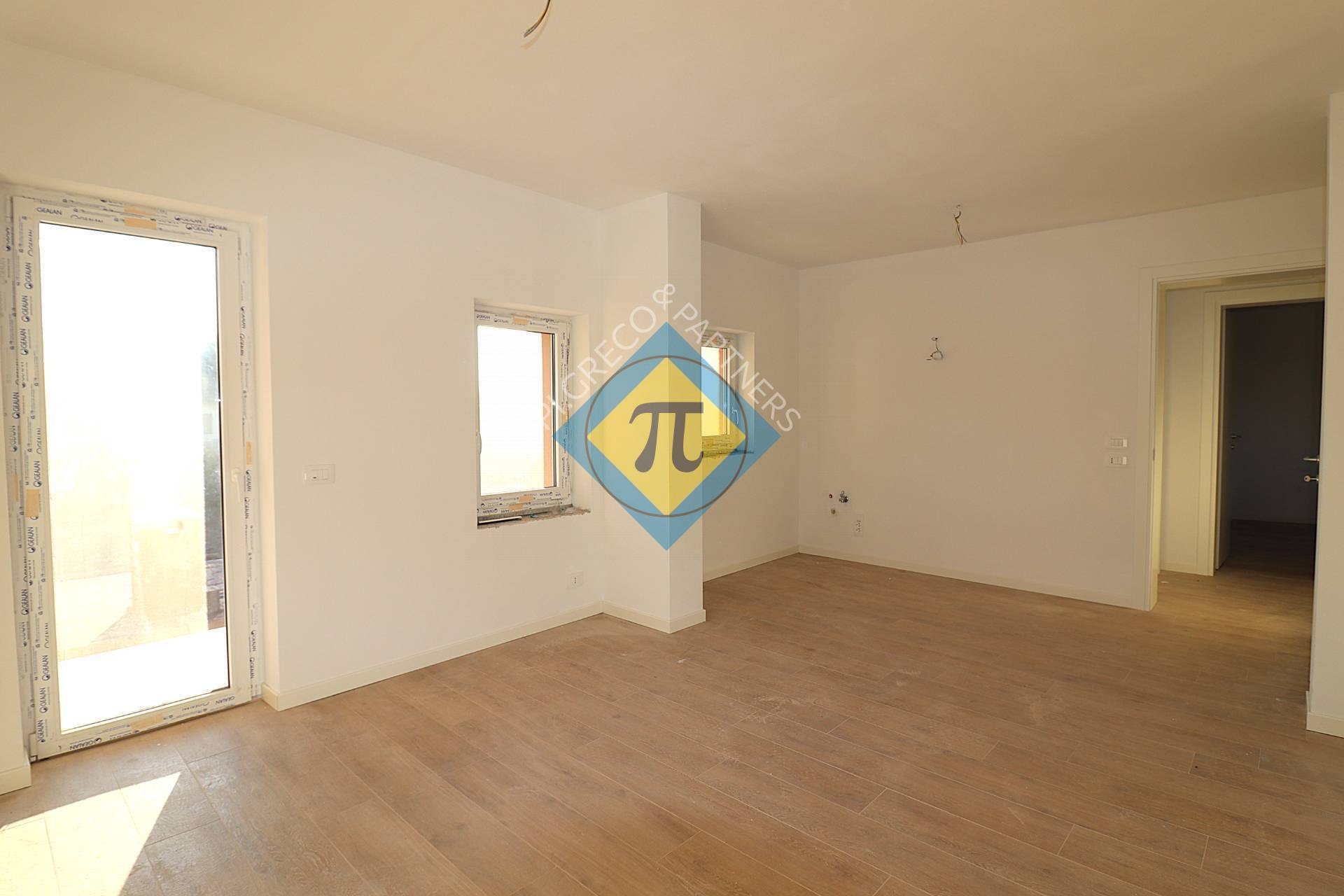 In nuovo signorile condominio in fase di completamento di sole tre unit abitative proponiamo appartamento al piano terra con giardino esclusivo, entrata indipendente e due posti auto coperti di propriet.