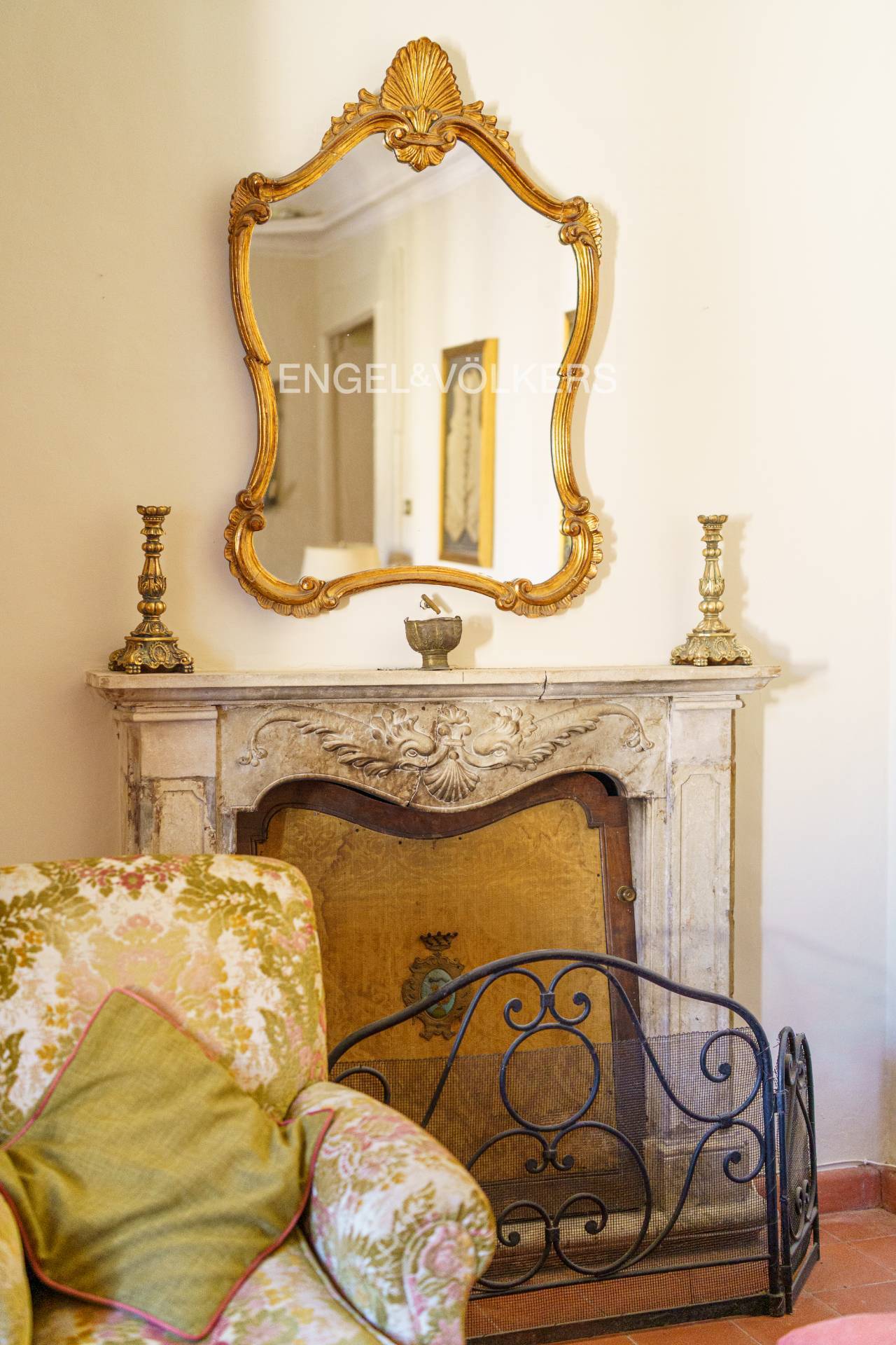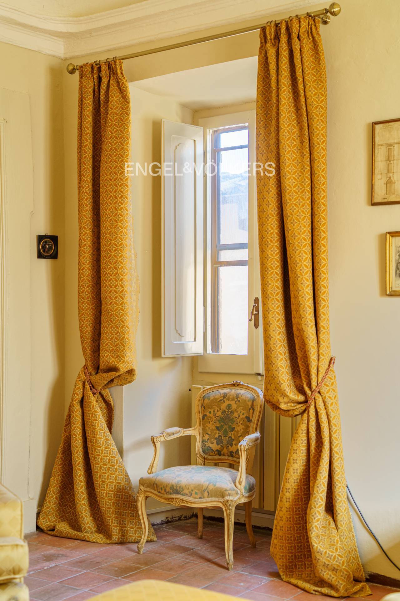 La distribuzione interna scenografica ed elegante: -una sala da pranzo di rappresentanza, -una cappella privata perfettamente conservata, -due saloni luminosi e di grande impatto, -uno studio riservato, -una cucina ampia con lavanderia e zona per la prima colazione, -un terrazzo che affaccia sul borgo e sulle architetture storiche.