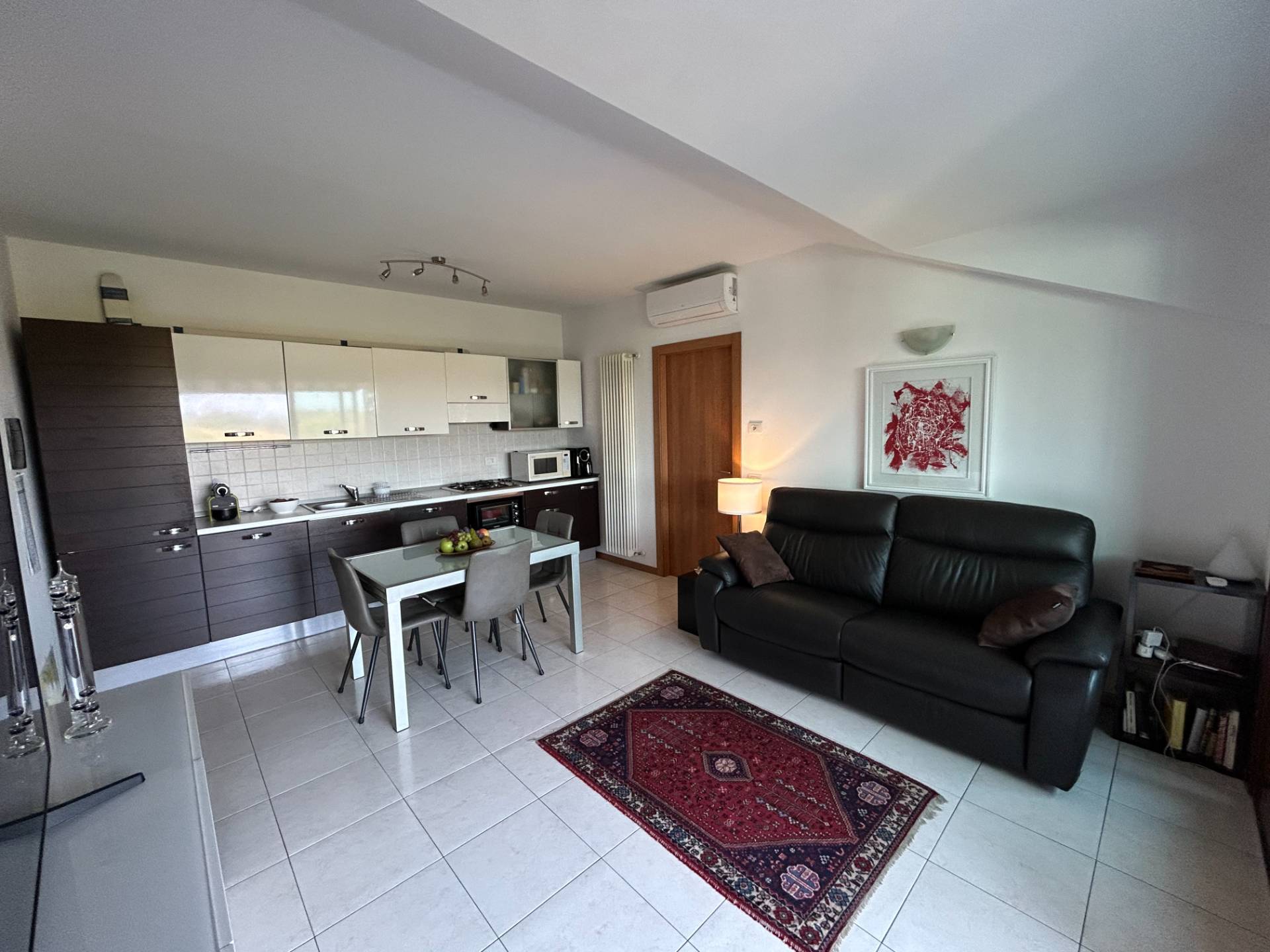 L'appartamento composto da 2 locali, di cui una luminosa camera da letto, un bagno moderno e funzionale, una cucina a vista completa di tutti gli elettrodomestici necessari e un ampio soggiorno.