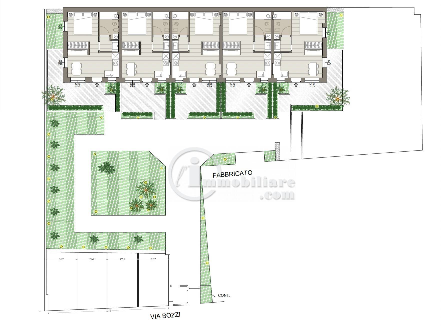 Laltro fabbricato, il secondo, pi piccolo ed interno al cortile, appartato, silenzioso e riservato, disposto su due soli piani sar composto da 10 bellissimi e ampi monolocali, di cui 5 al piano primo e 5 al piano terra, dotati di bellissimi giardini privati, separati da siepi sempre verdi.