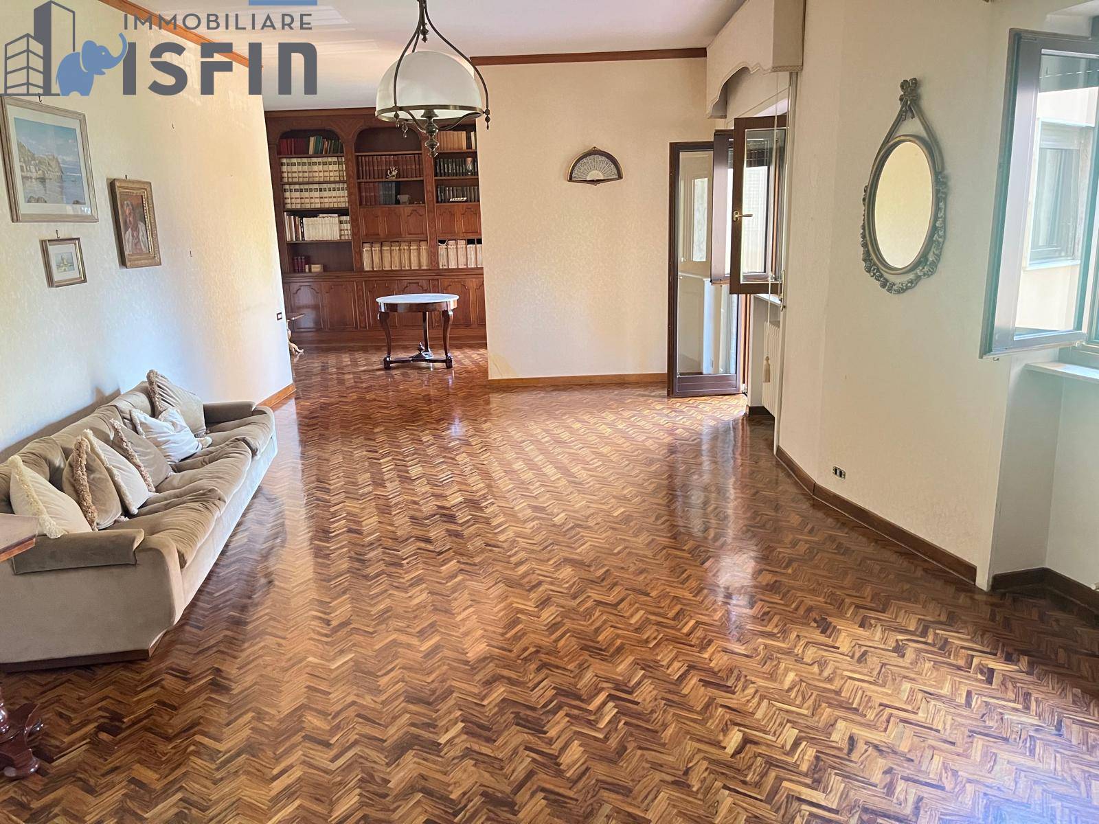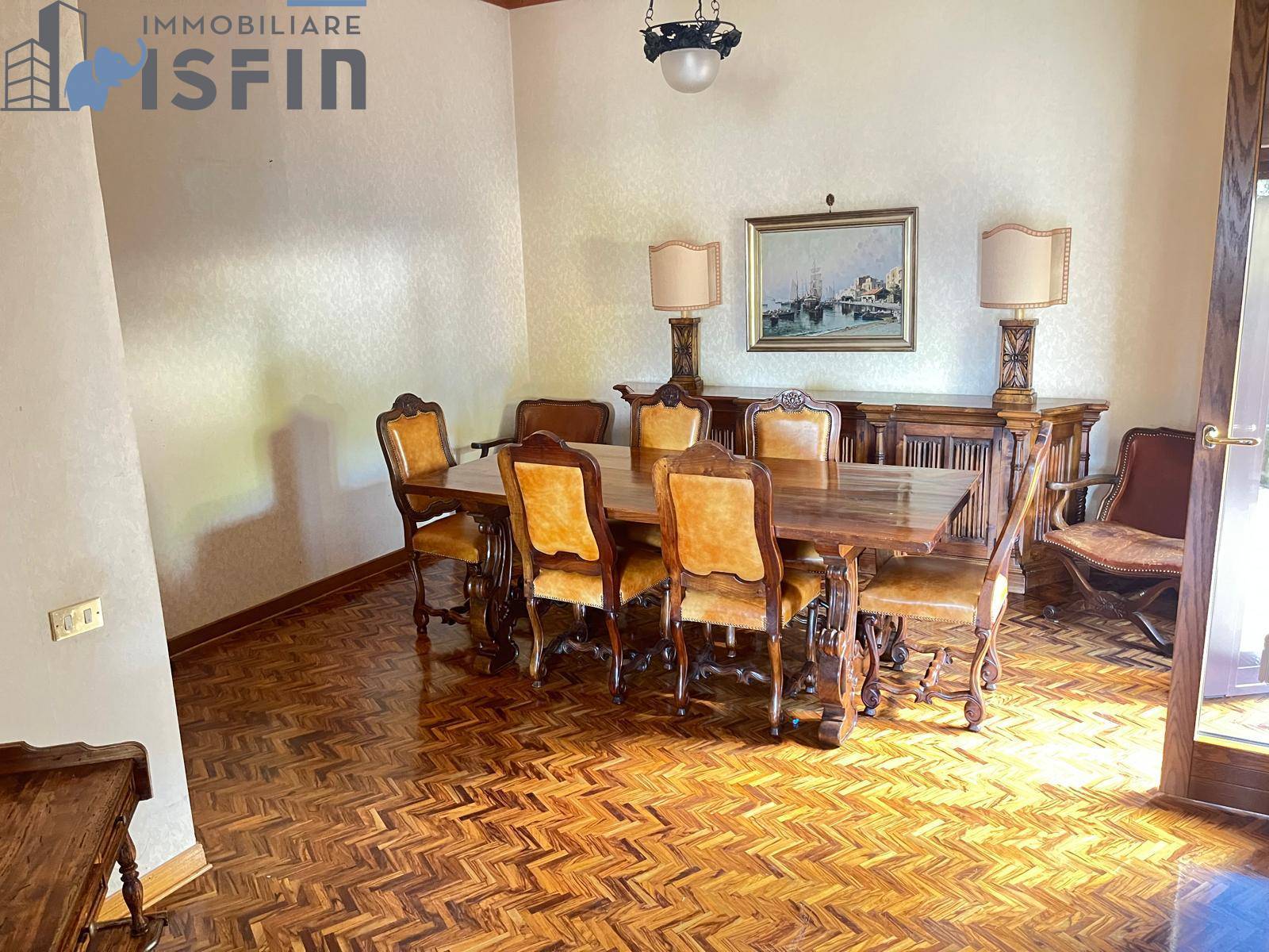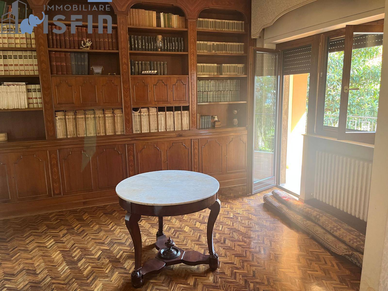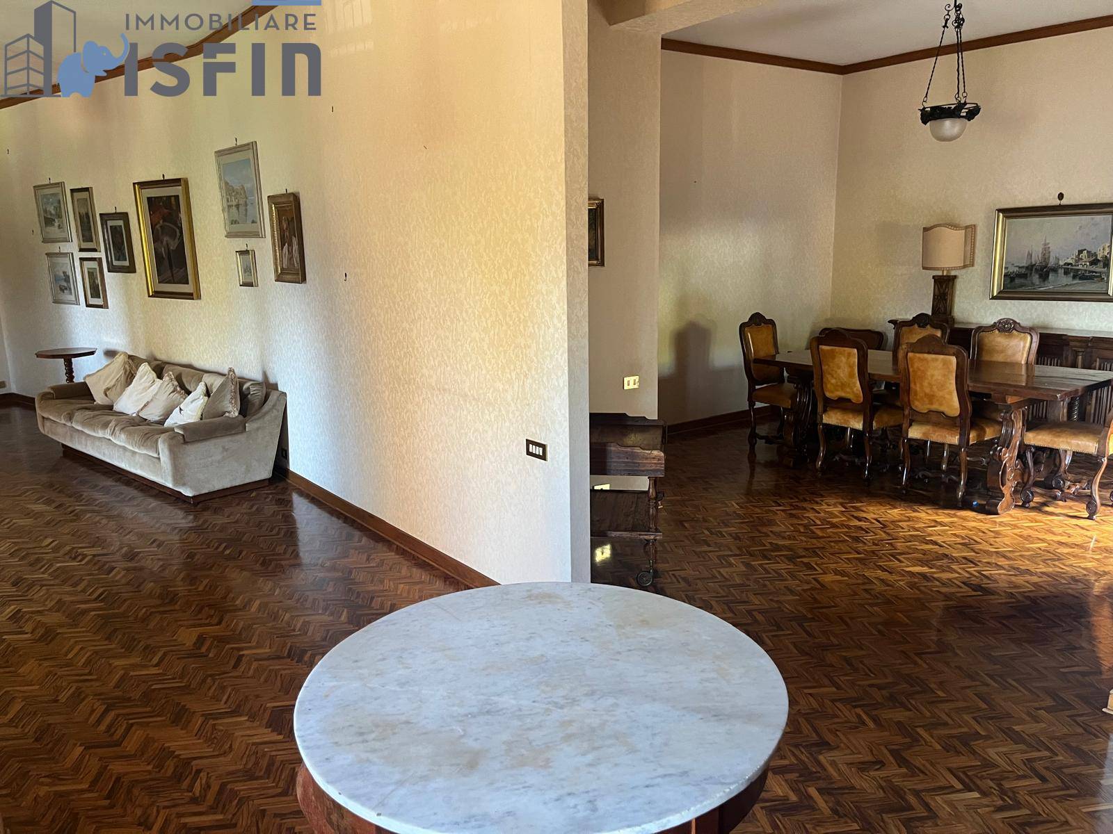 L'appartamento cos composto : ingresso, ampio disimpegno, salone triplo con accesso al terrazzo, soggiorno e cucina con accesso diretto al giardino a livello, anche la sala da pranzo accede al giardino, cinque camere da letto di cui due con terrazzo e tre bagni.