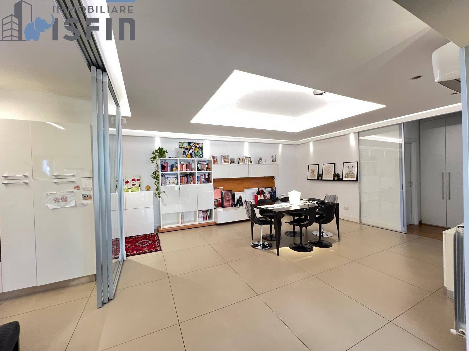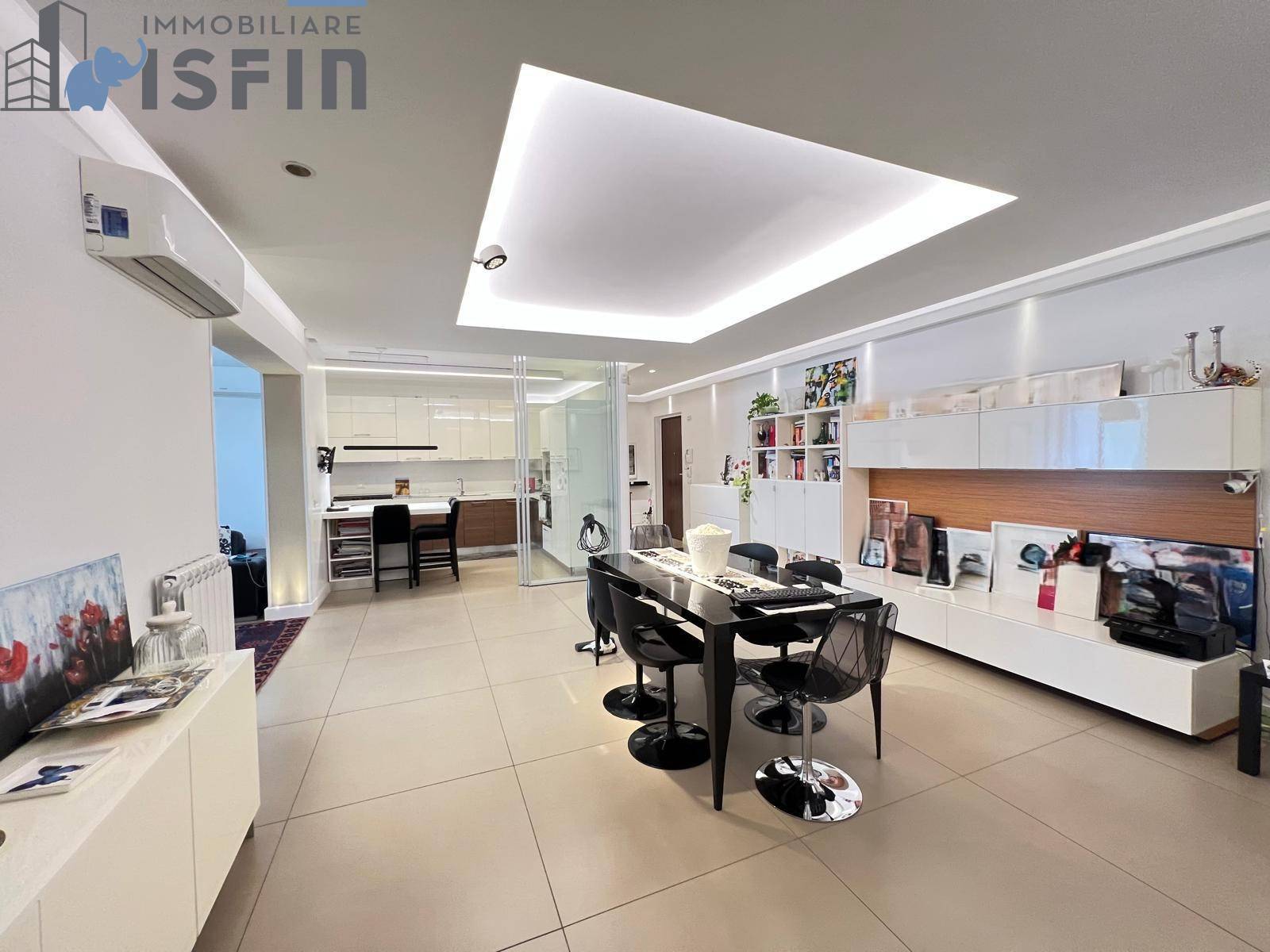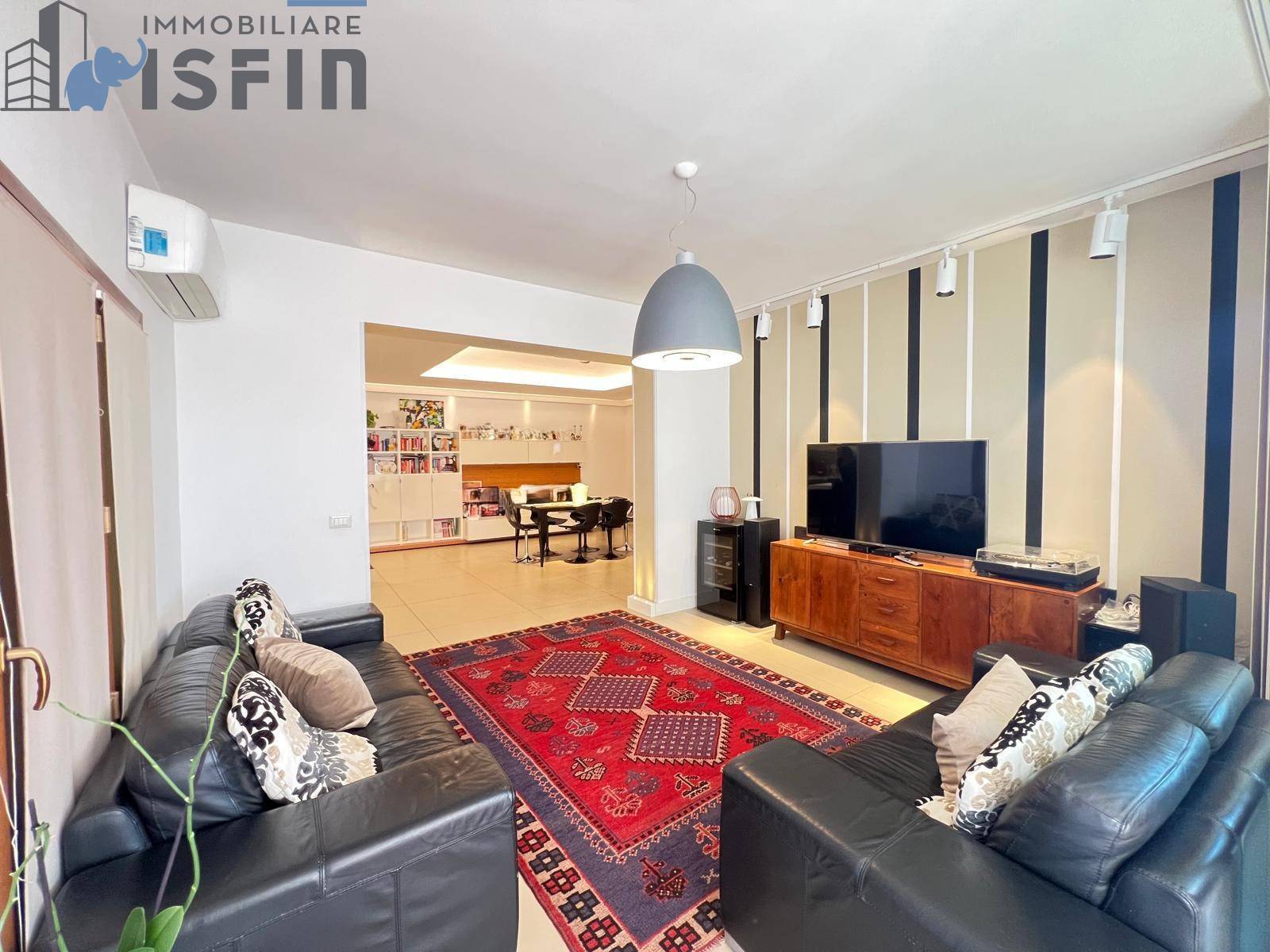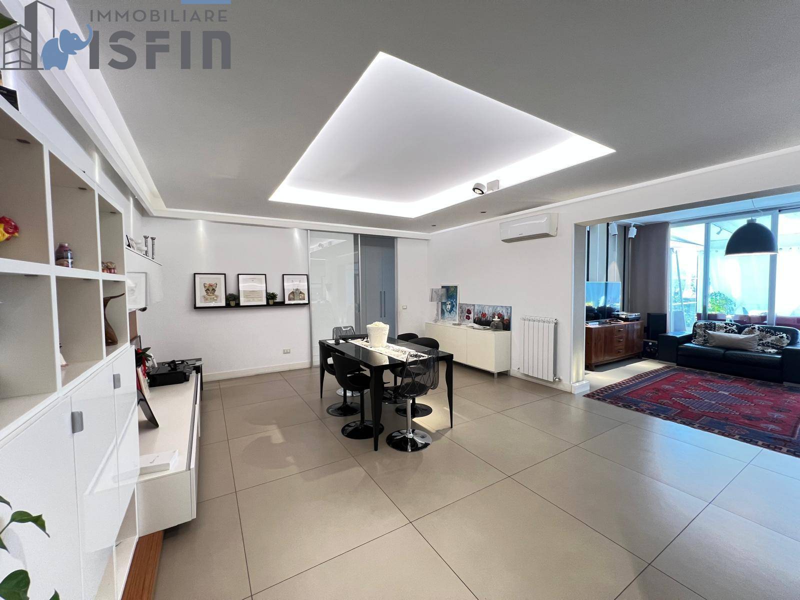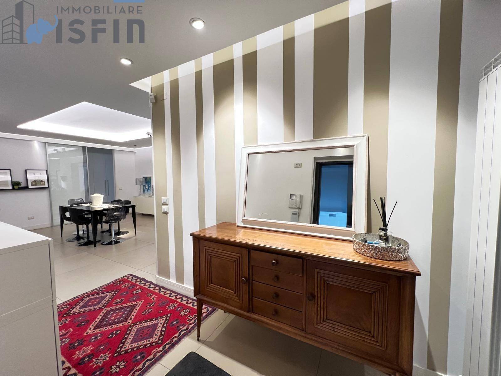 A Cosenza (CS) in Via Pietro Nenni n° 42 - ISFIN Immobiliare propone in vendita un appartamento con rifiniture di pregio e ampio terrazzo con annessa tettoia chiusa di circa 206 m ( di cui circa 135 m sono di appartamento, circa 60 m di terrazzo di cui circa 16 m chiusi con tettoia munita di tende avvolgibili, e circa 10 m di balconi) posto al terzo piano di un fabbricato con ascensore.
