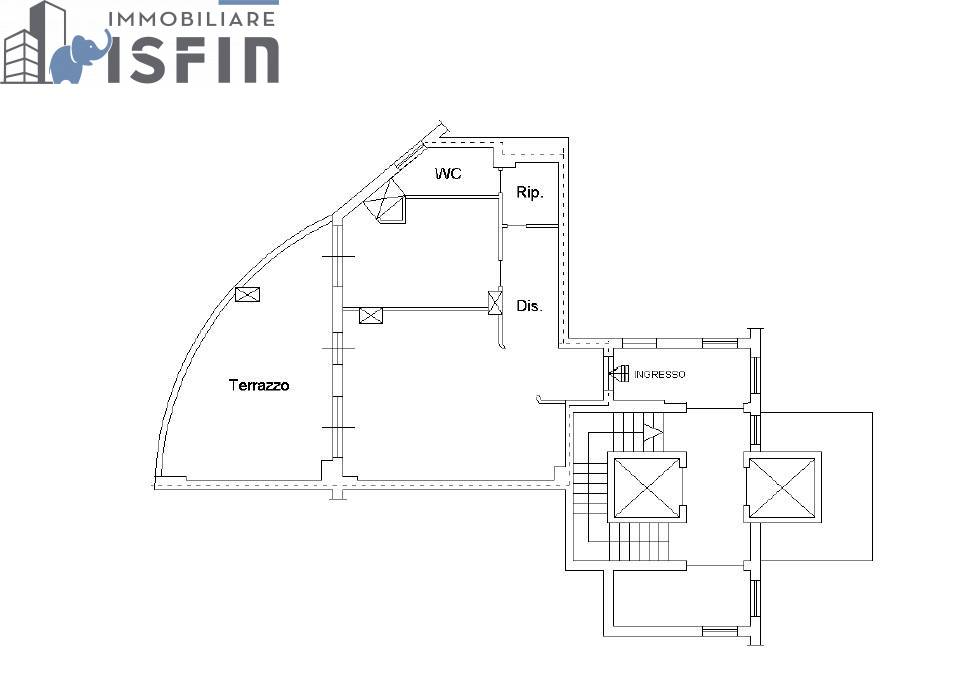 Lappartamento, attualmente accatastato in categoria A/10 (uso ufficio) con possibilit di cambio di destinazione duso in categoria A/2 (civile abitazione), si sviluppa su una superficie complessiva di 109 mq (di cui 76 mq interni e 33 mq di terrazzo coperto con esposizione a Sud), ed composto da: ingresso/disimpegno, ampio salone/reception con accesso diretto al terrazzo dove e possibile ricavare l'angolo cottura, una stanza/studio, antibagno e bagno.