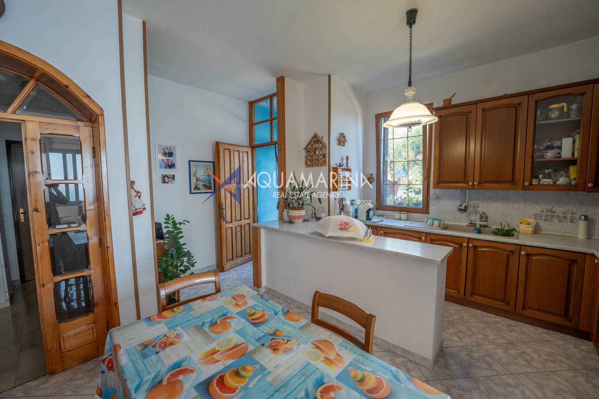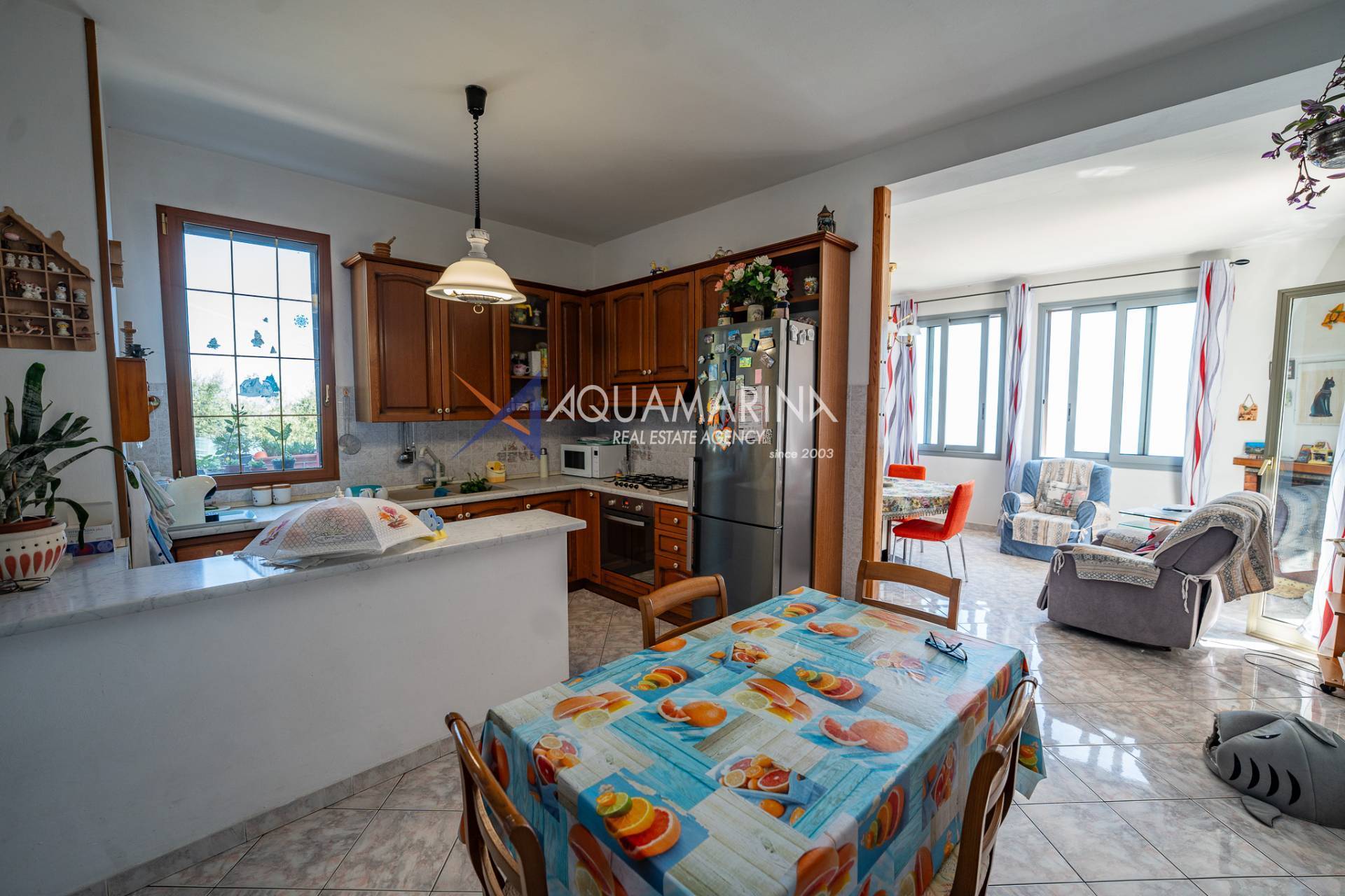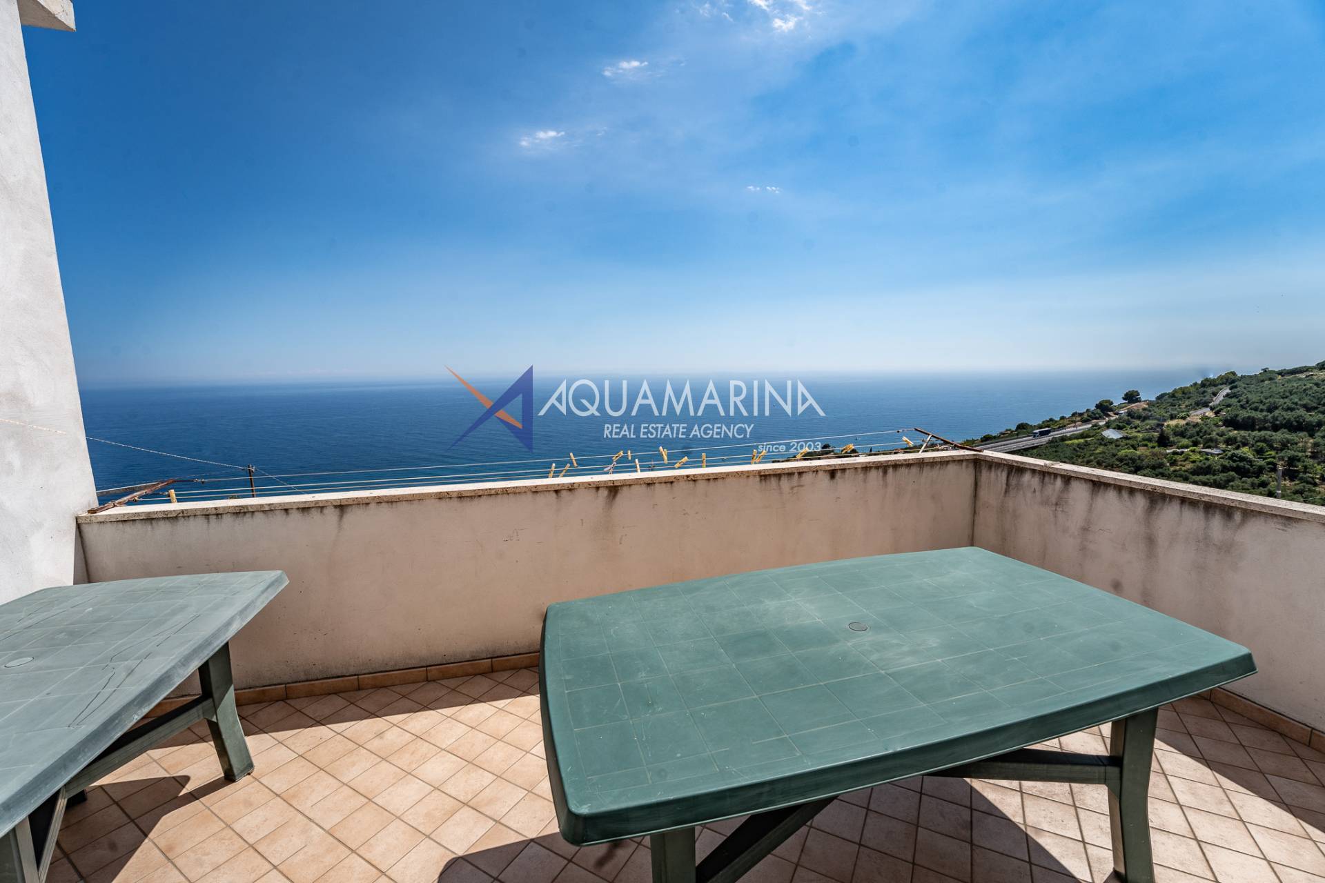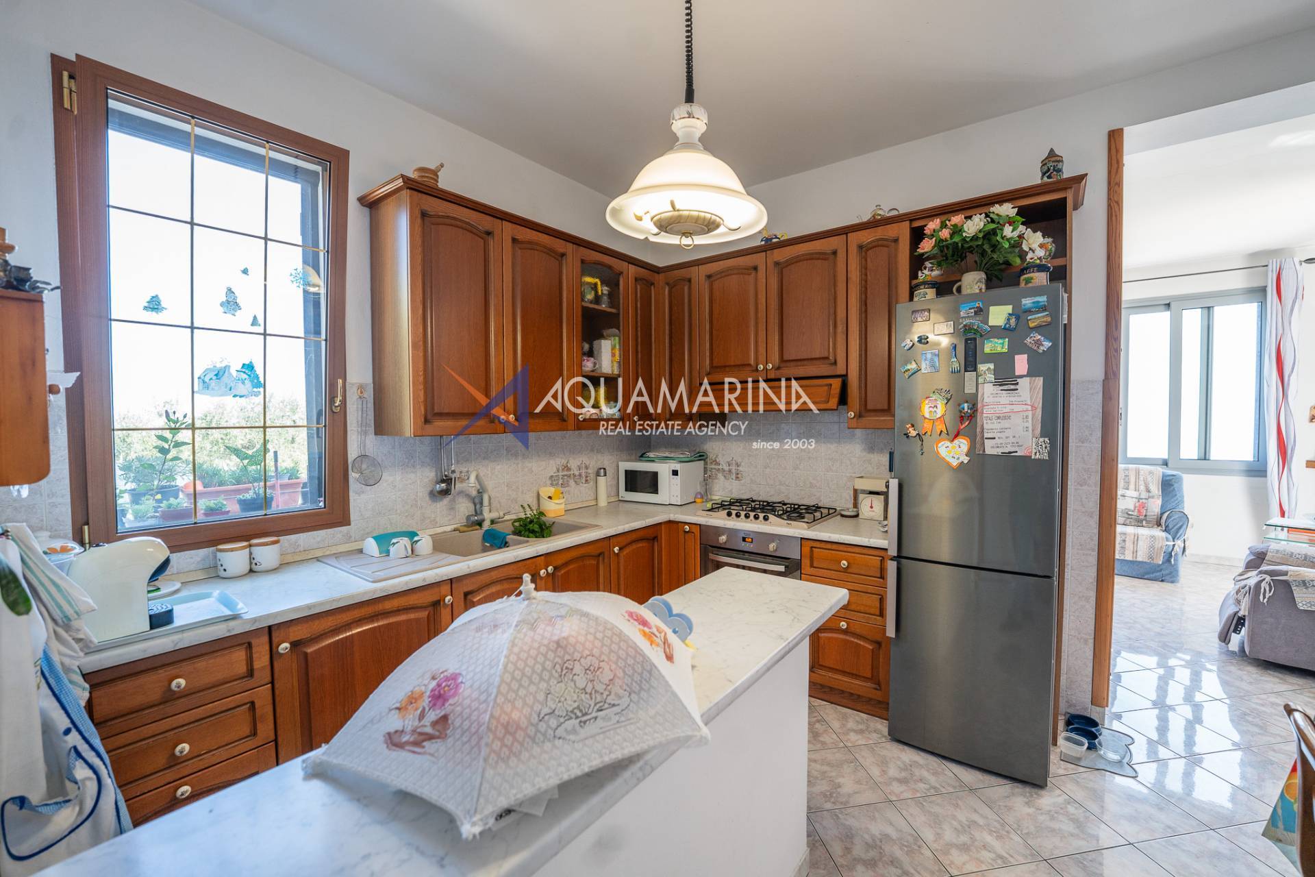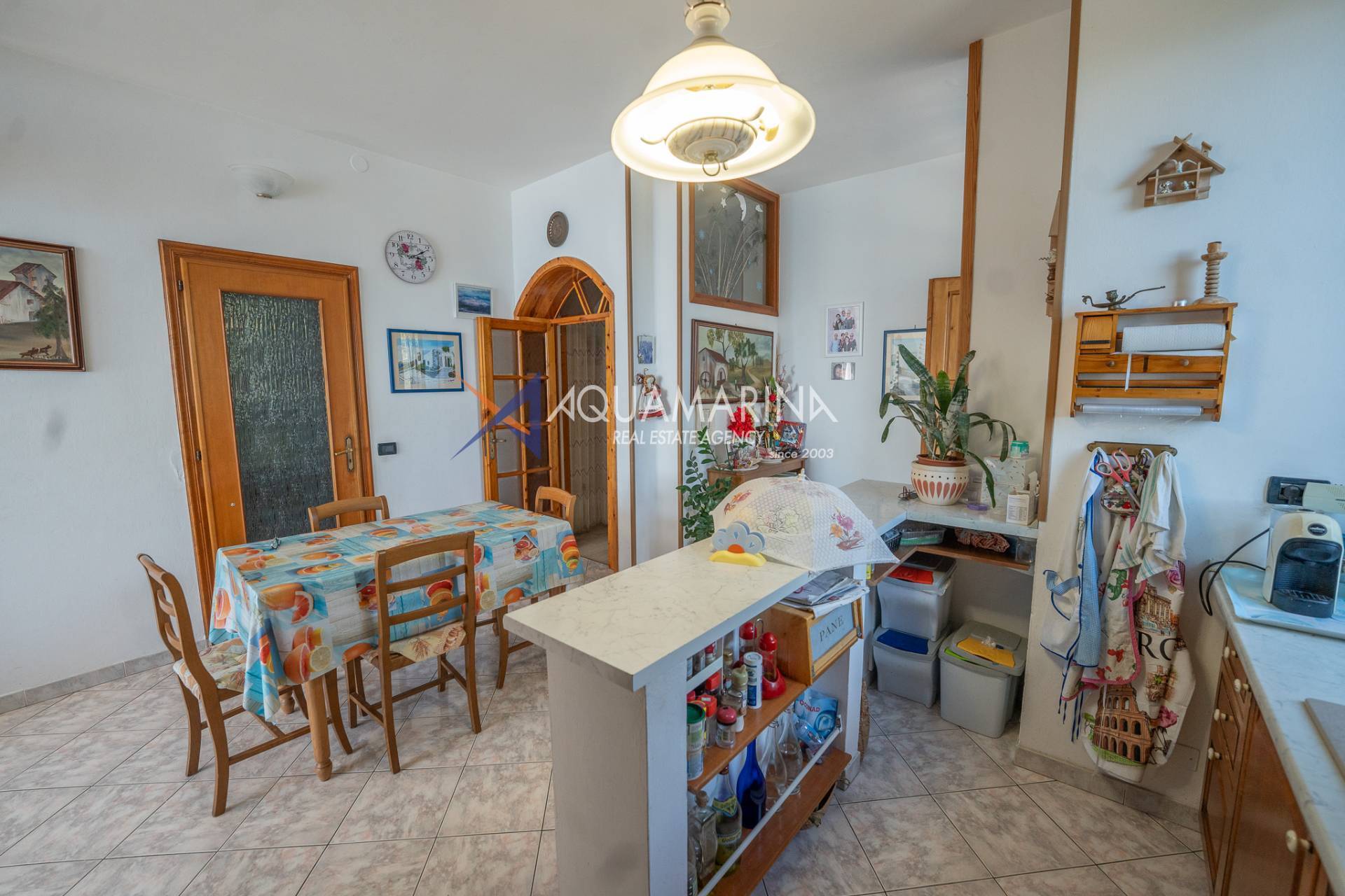 Lingresso si apre su una spaziosa cucina abitabile, perfettamente funzionale e ben organizzata, che si collega direttamente allampio soggiorno, luminoso e arioso, caratterizzato da due grandi vetrate che inondano lambiente di luce naturale e regala una suggestiva esposizione a sud con vista aperta sul mare. Dal soggiorno si accede alla prima terrazza privata, un vero e proprio spazio di relax con affaccio panoramico, ideale per colazioni al sole o momenti di tranquillit in totale privacy.