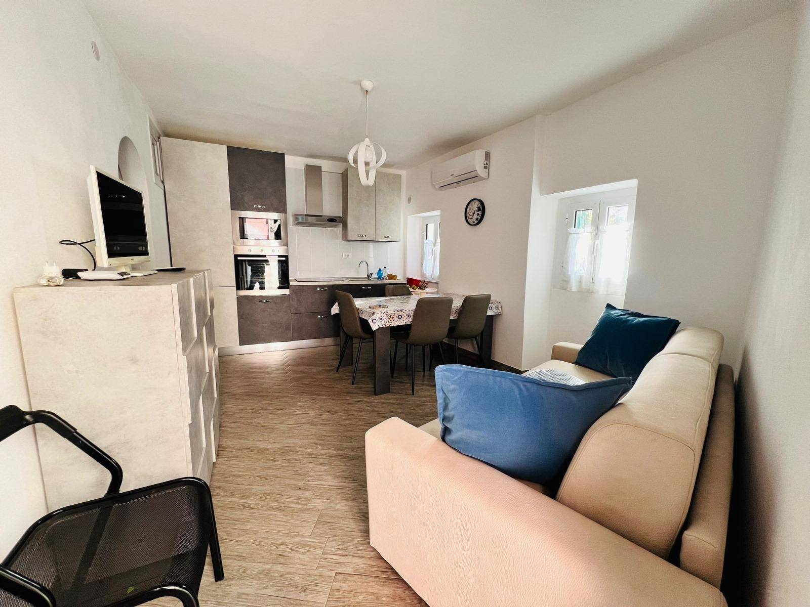 In centro paese, bilocale su due livelli, completamente ristrutturato con terrazzo vista mare. L'immobile, con ingresso indipendente, caratterizzato da una doppia esposizione a Sud - Ovest che lo rende luminoso e ben ventilato.