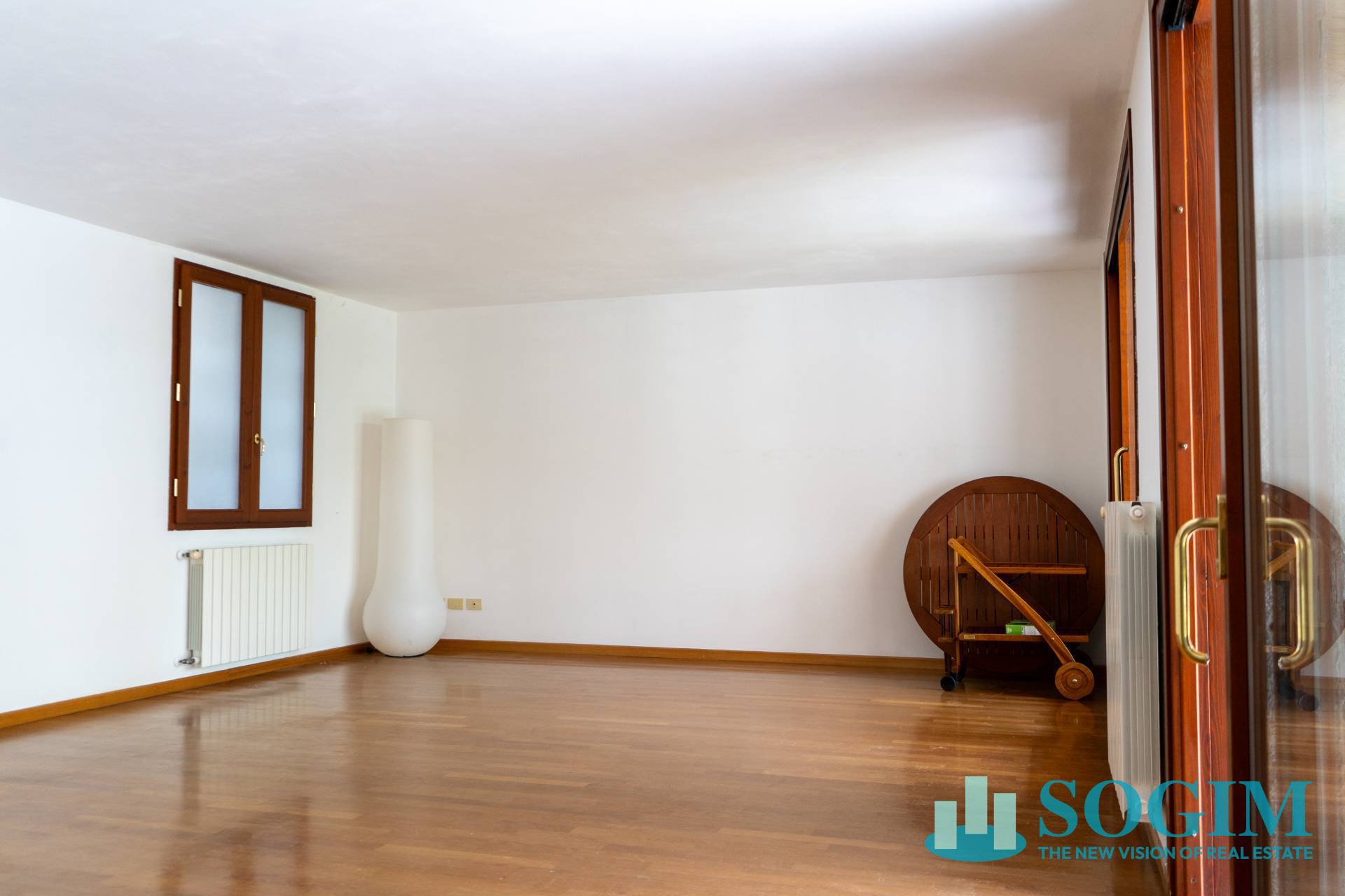 Il parquet di una gradevole colorazione naturale costituisce il fil rouge dell'abitazione coprendo tutta la superficie ad eccezione del bagno in cui viene lasciato spazio alla ceramica.