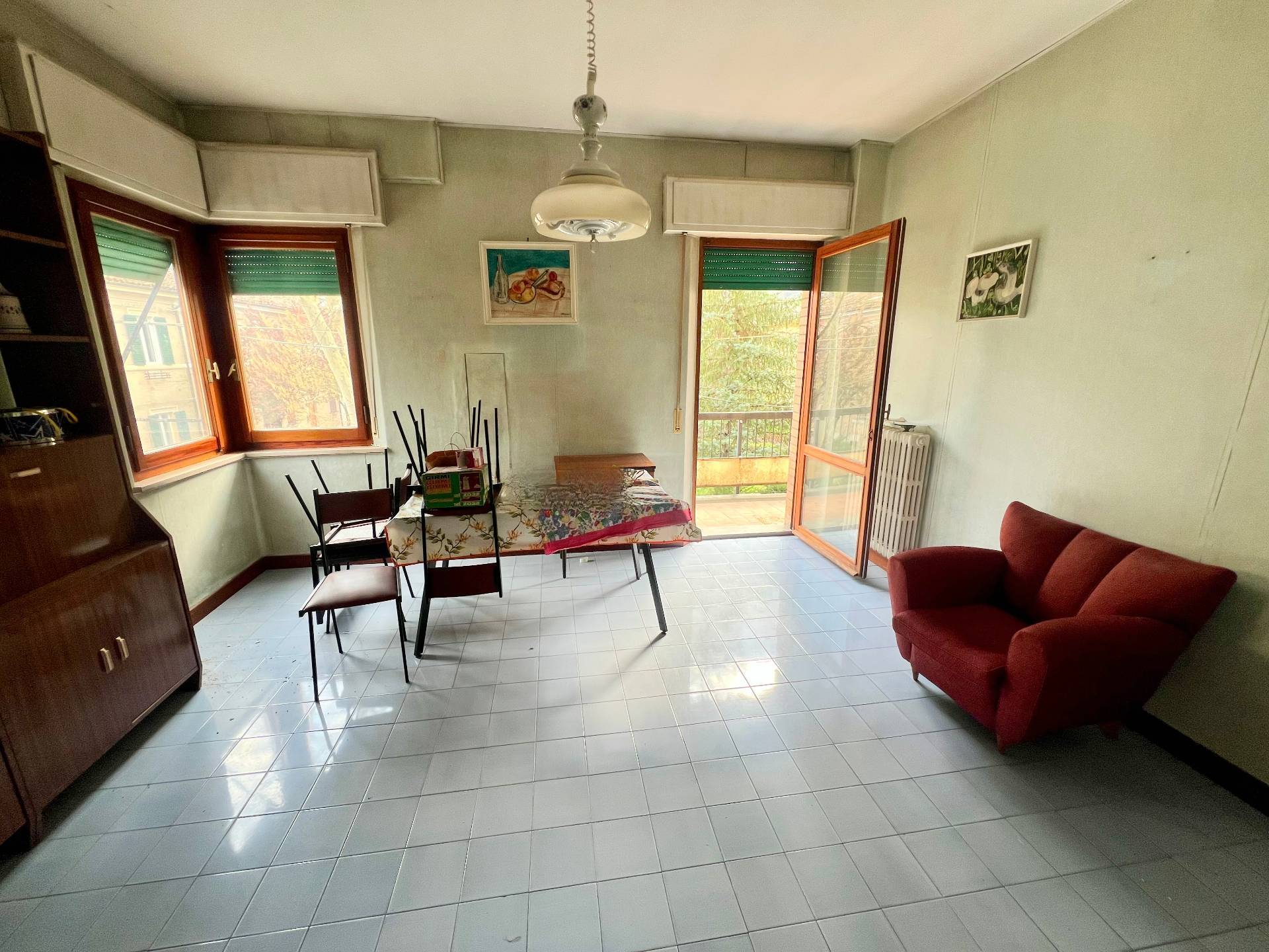 Luminoso salone con doppia uscita sulla terrazza, che regala una splendida esposizione e la possibilit di godere di momenti di relax all'aria aperta.