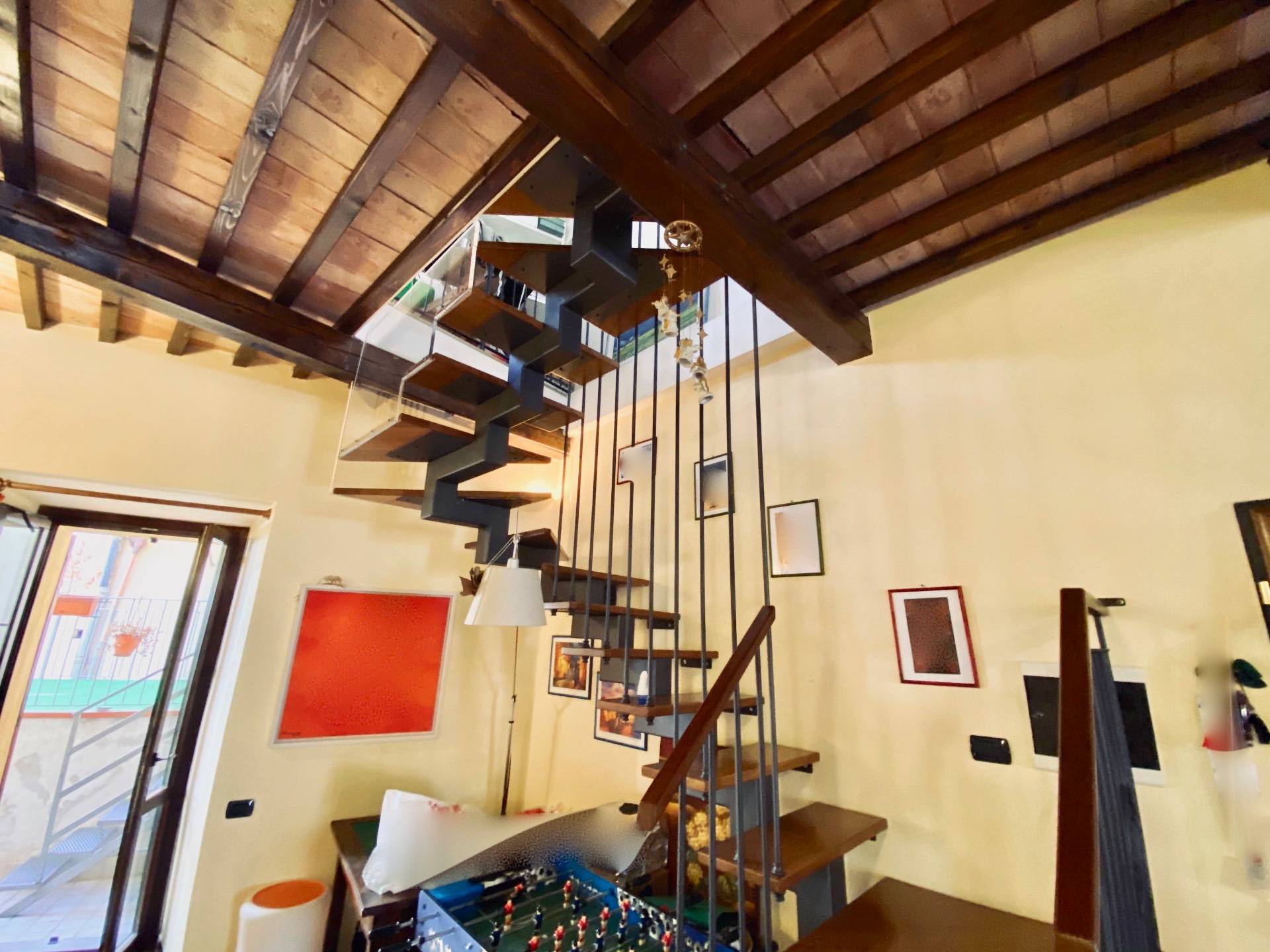 Composto da: Ingresso salone e zona pranzo, cucina molto spaziosa con tinello, bagno con finestra e ripostiglio, scala in legno di accesso al reparto notte dove troviamo una camera padronale con comoda cabina armadio e un bagno con finestra, altra camera matrimoniale e secondo bagno molto spazioso con vasca e finestra, terrazzino.