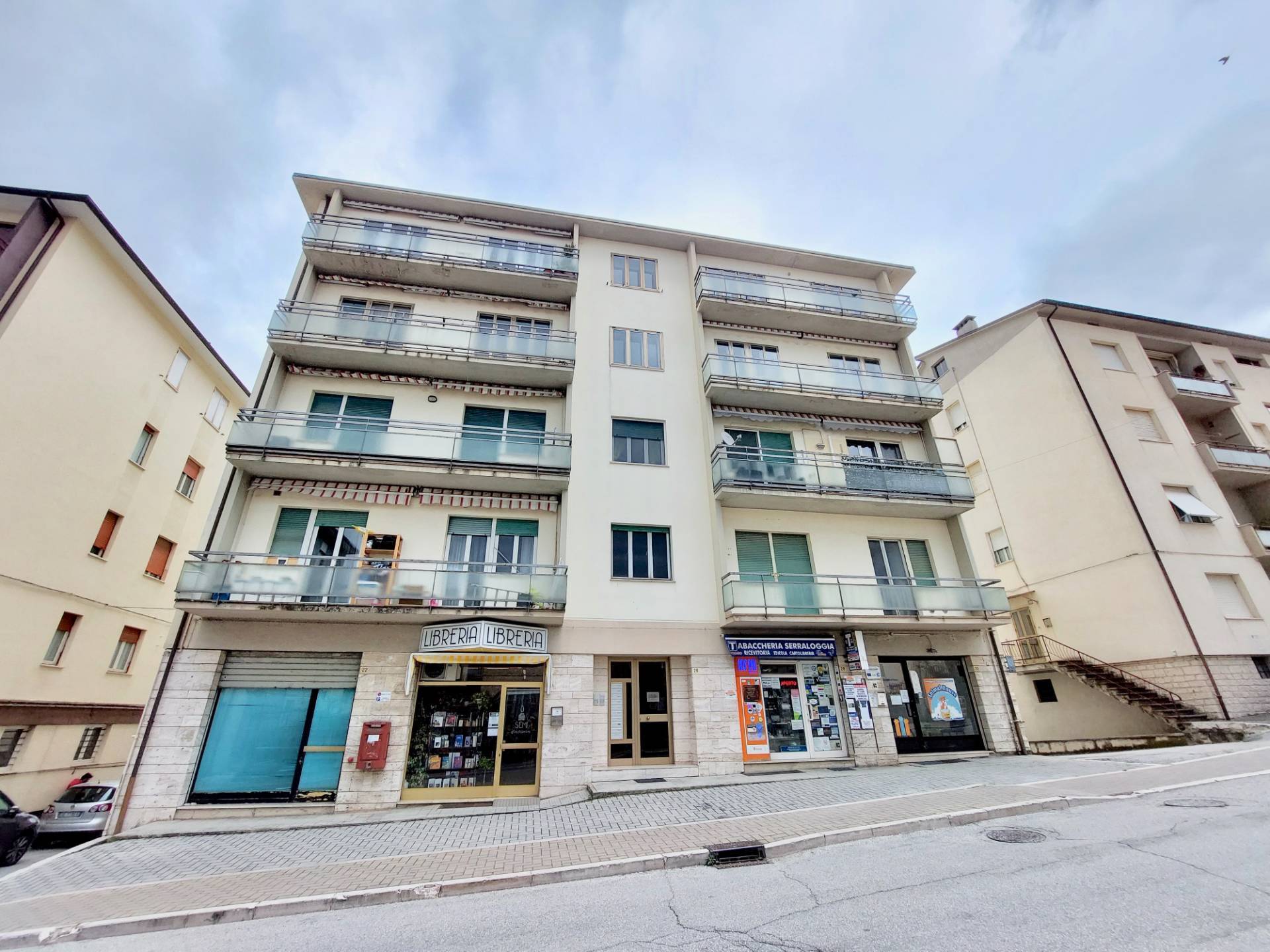 A Fabriano, in via Serraloggia, l'Agenzia immobiliare Peverini propone un appartamento di 113 mq, al terzo piano senza ascensore, cos composto: ingresso con portone blindato all'entrata, una grande sala con accesso alla terrazza, una cucina luminosa e abitabile con accesso alla stessa terrazza, uno studio; al reparto notte due grandi camere matrimoniali, un bagno con box doccia e finestra e un ripostiglio.