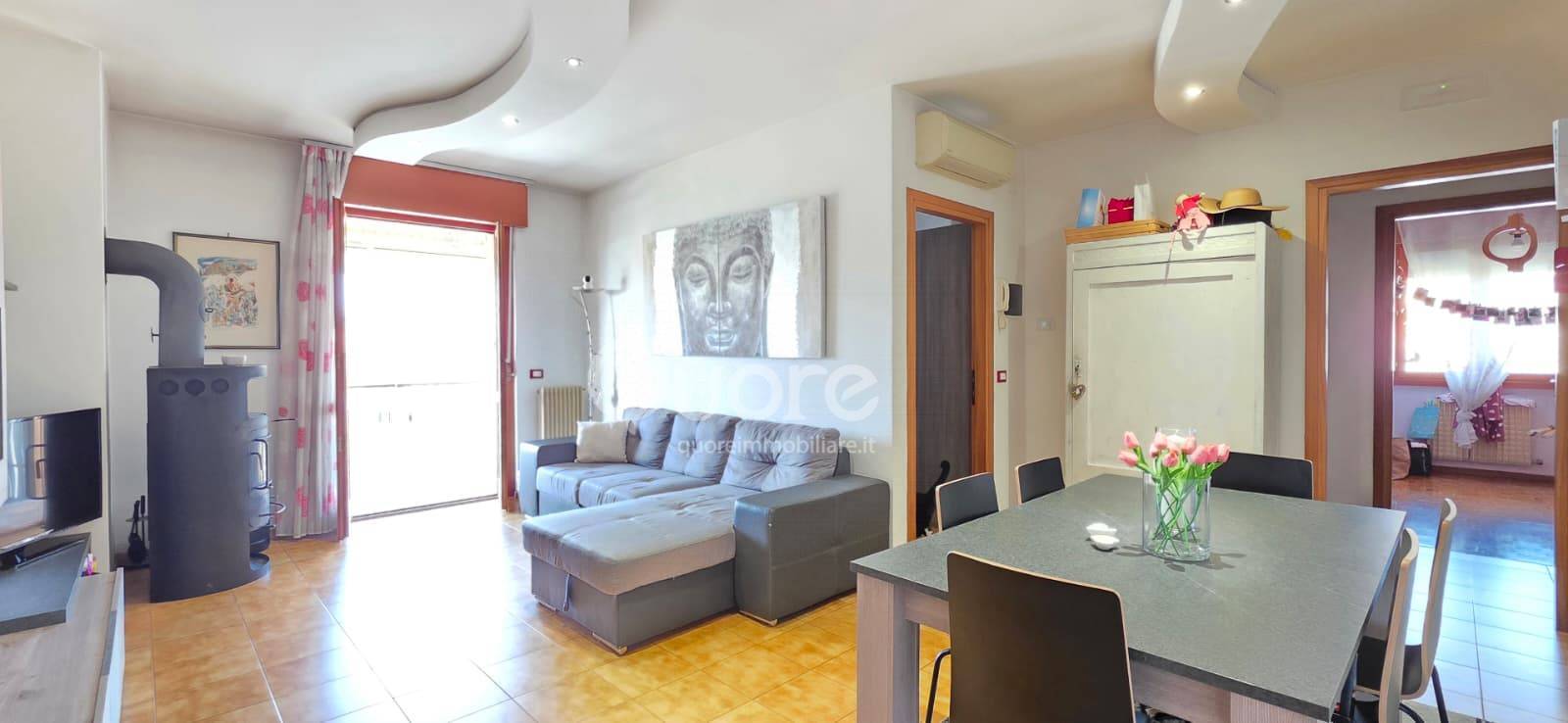 Varcando la porta dingresso si viene accolti da un ampio soggiorno luminoso con accesso alla terrazza, uno spazio ideale per rilassarsi, leggere un libro o godersi un caff allaria aperta.