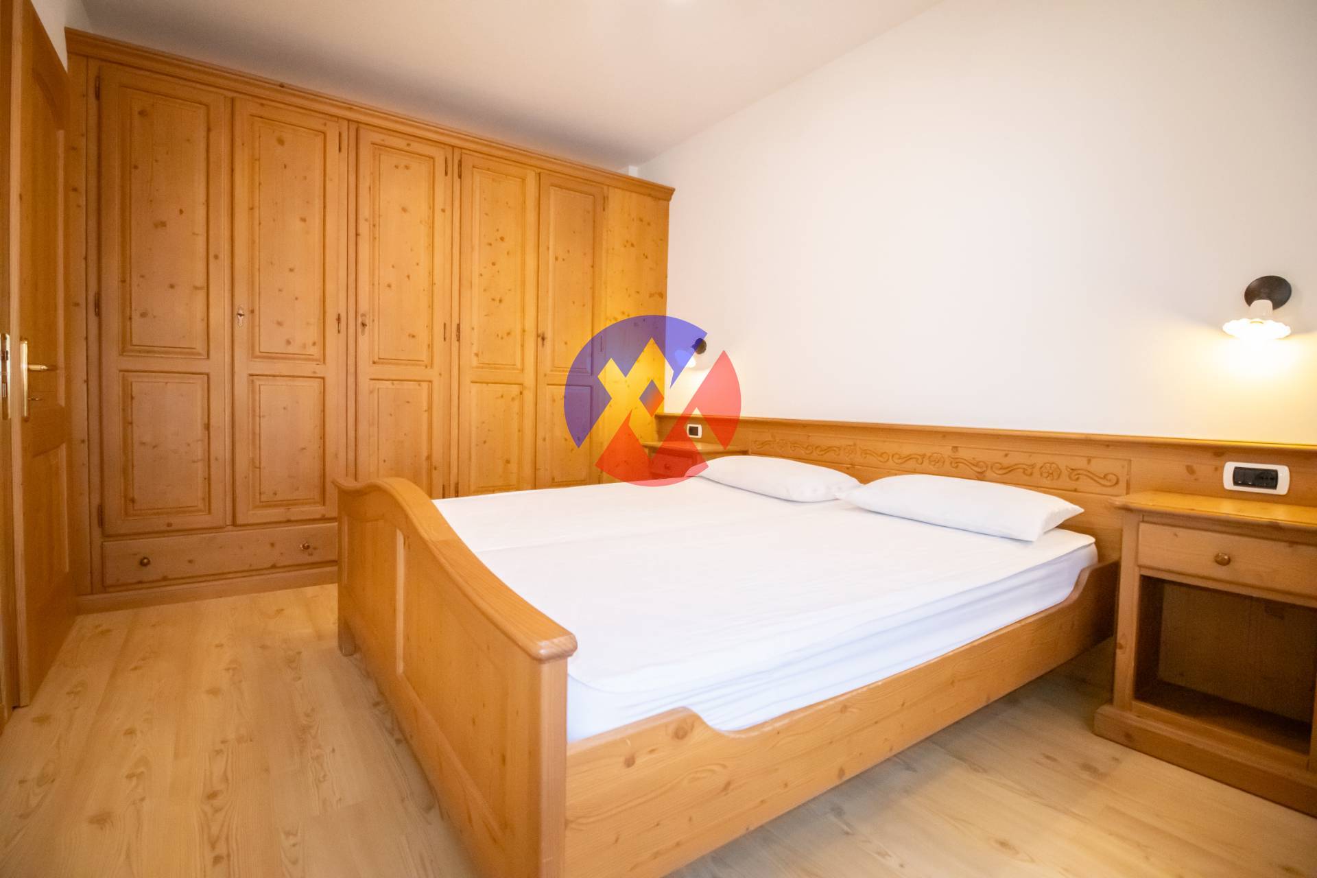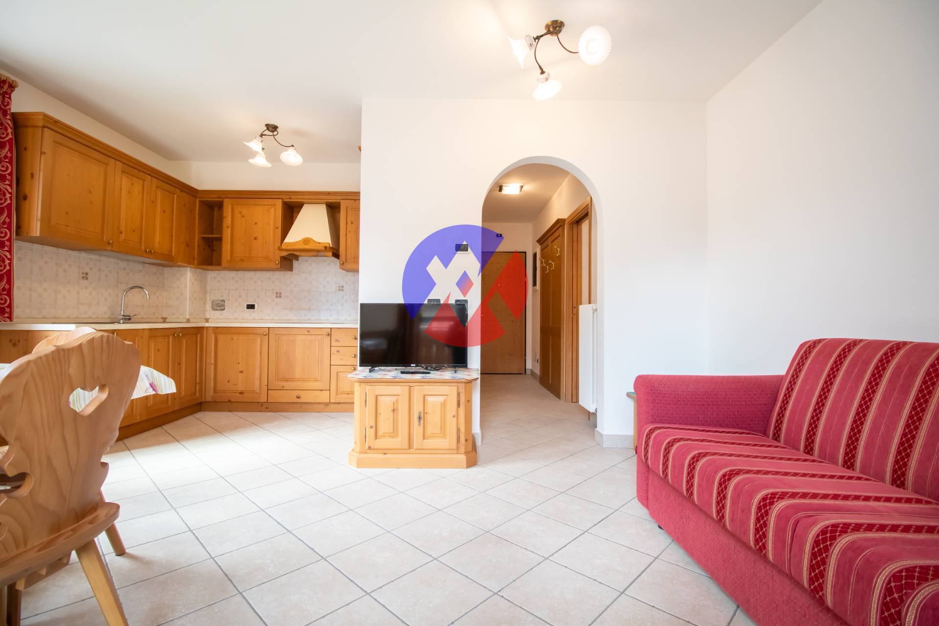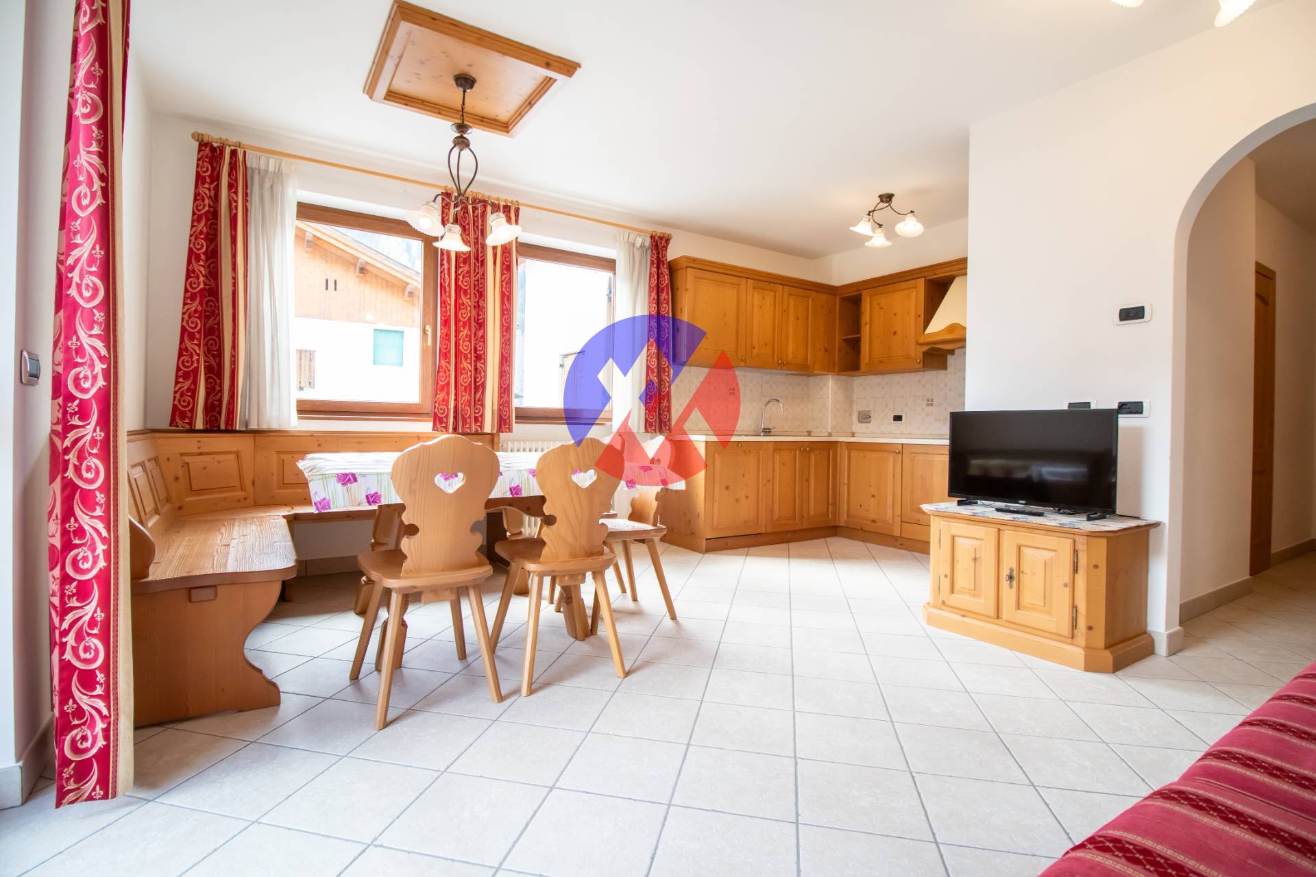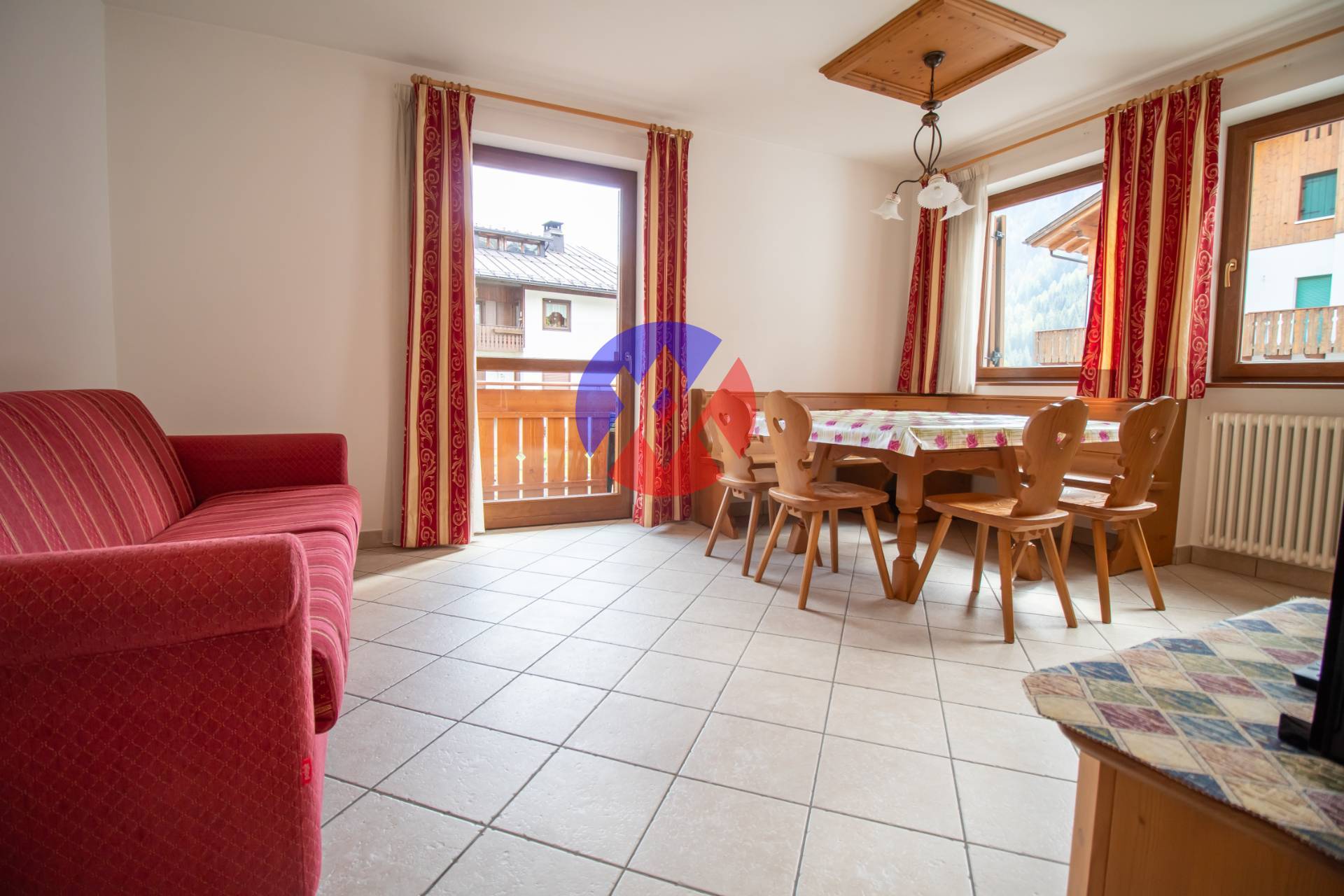 APPARTAMENTO Questo trilocale situato al piano primo e si sviluppa su circa mq 93 cos suddivisi: - Ingresso con appendiabiti - Soggiorno con ampio divano e tavolo da pranzo con panca angolare - Balcone - Angolo cottura con piano a 4 fuochi, lavastoviglie e frigorifero - Disbrigo che suddivide la zona notte - Camera con due letti singoli e scrivania e uscita su balcone - Bagno finestrato con doccia e lavatrice - Camera matrimoniale con armadio e uscita su balcone Pertinenze - Posto auto in garage - Cantina POSIZIONE Il condominio si trova in posizione molto tranquilla a pochi metri dal centro di Falcade ed i principali servizi.