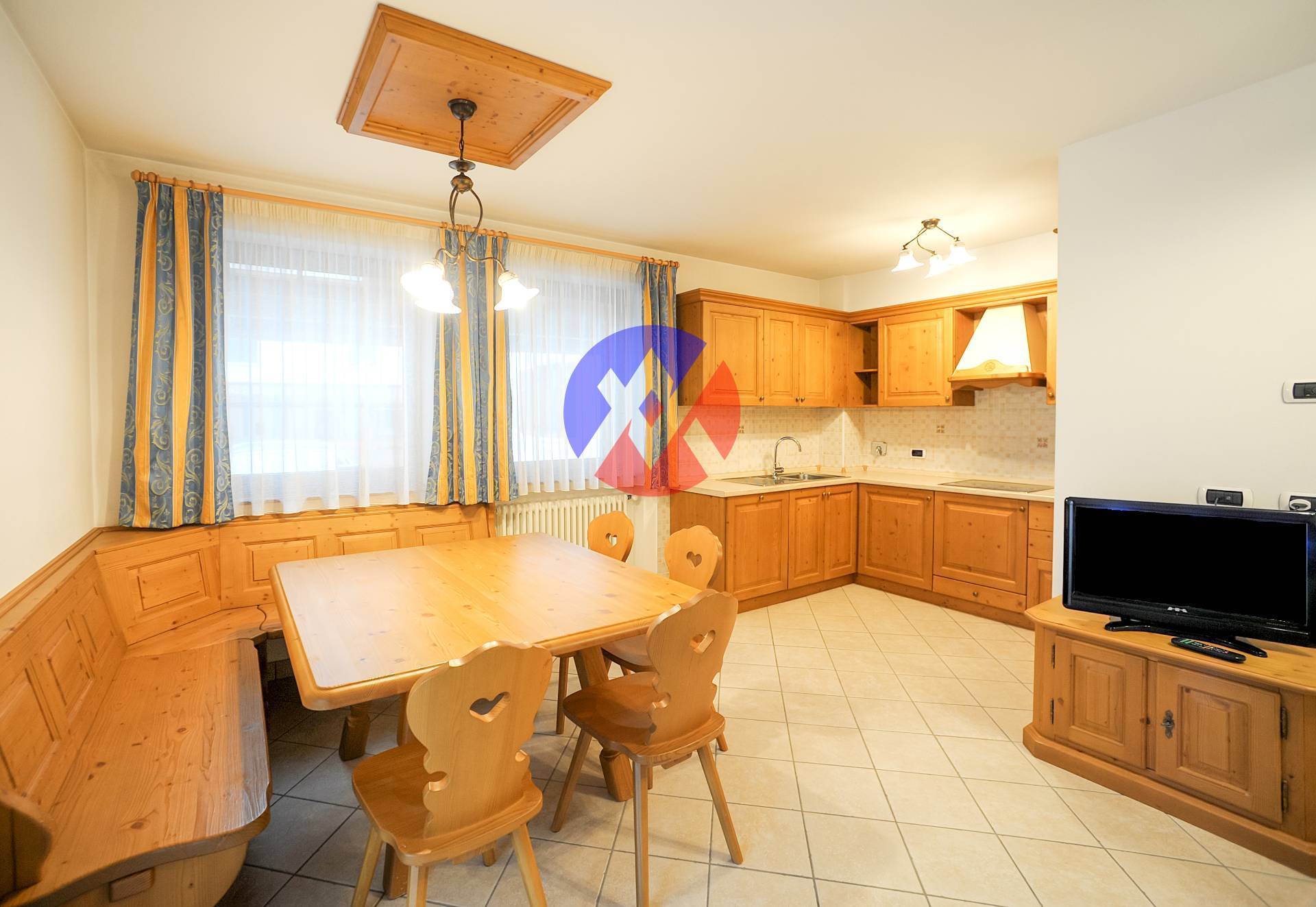 APPARTAMENTO Questo trilocale situato al piano terra si sviluppa su circa mq 84 cos suddivisi: - Ingresso con appendiabiti - Soggiorno con ampio divano e tavolo da pranzo con panca angolare - Balcone - Angolo cottura con piano a 4 fuochi, lavastoviglie e frigorifero - Disbrigo che suddivide la zona notte - Camera con due letti singoli e scrivania - Bagno finestrato con doccia e lavatrice - Camera matrimoniale con armadio Pertinenze - Posto auto esterno privato - Cantina POSIZIONE Il condominio si trova in posizione molto tranquilla a pochi metri dal centro di Falcade ed i principali servizi.