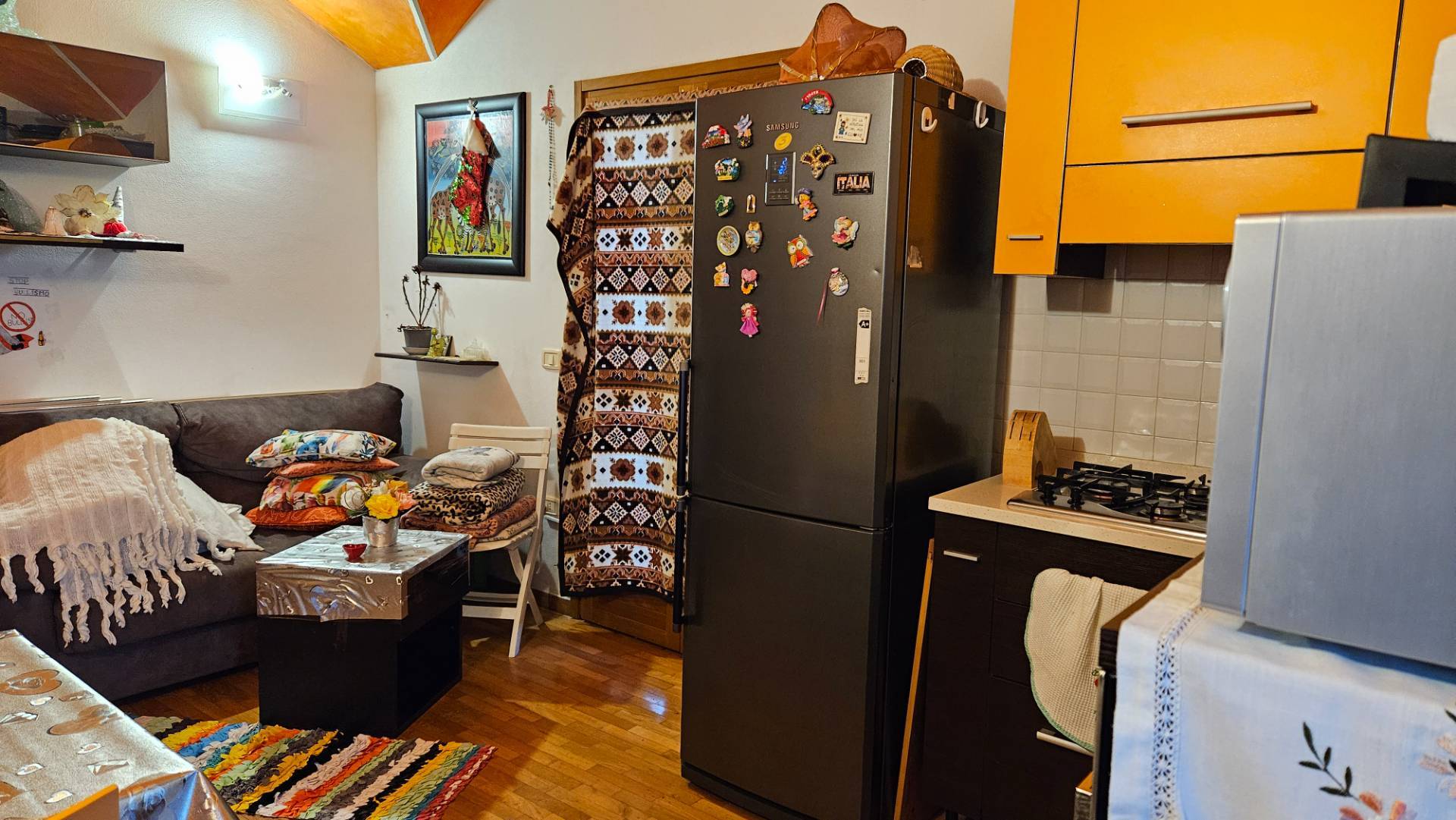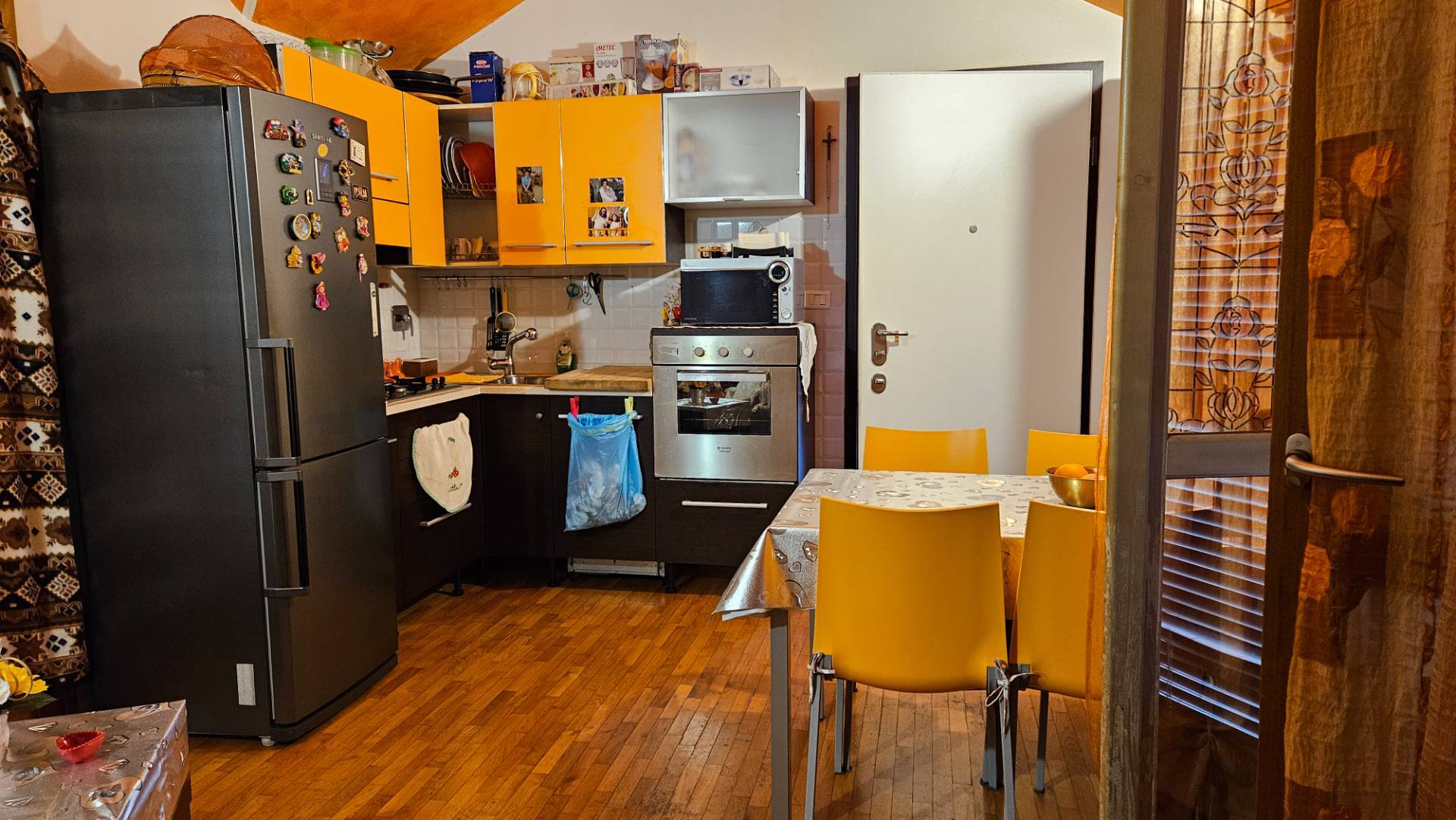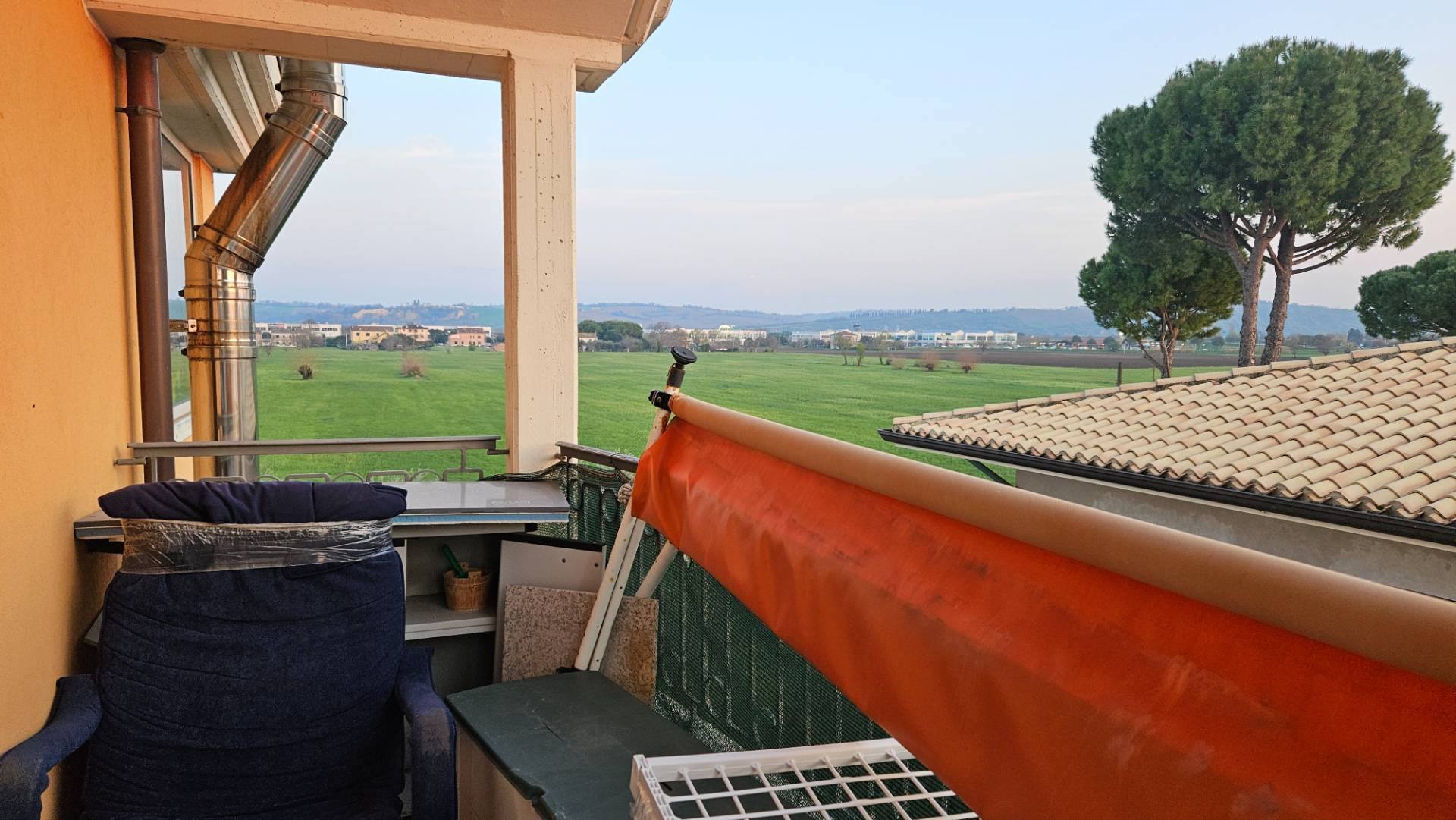 L'appartamento, in buono stato cosi composto: ampio ingresso con terrazzo e porta blindata, zona living con cucina moderna a vista e due balconi, camera matrimoniale con balcone, cameretta/studio, bagno con doccia ed accesso diretto al balcone.