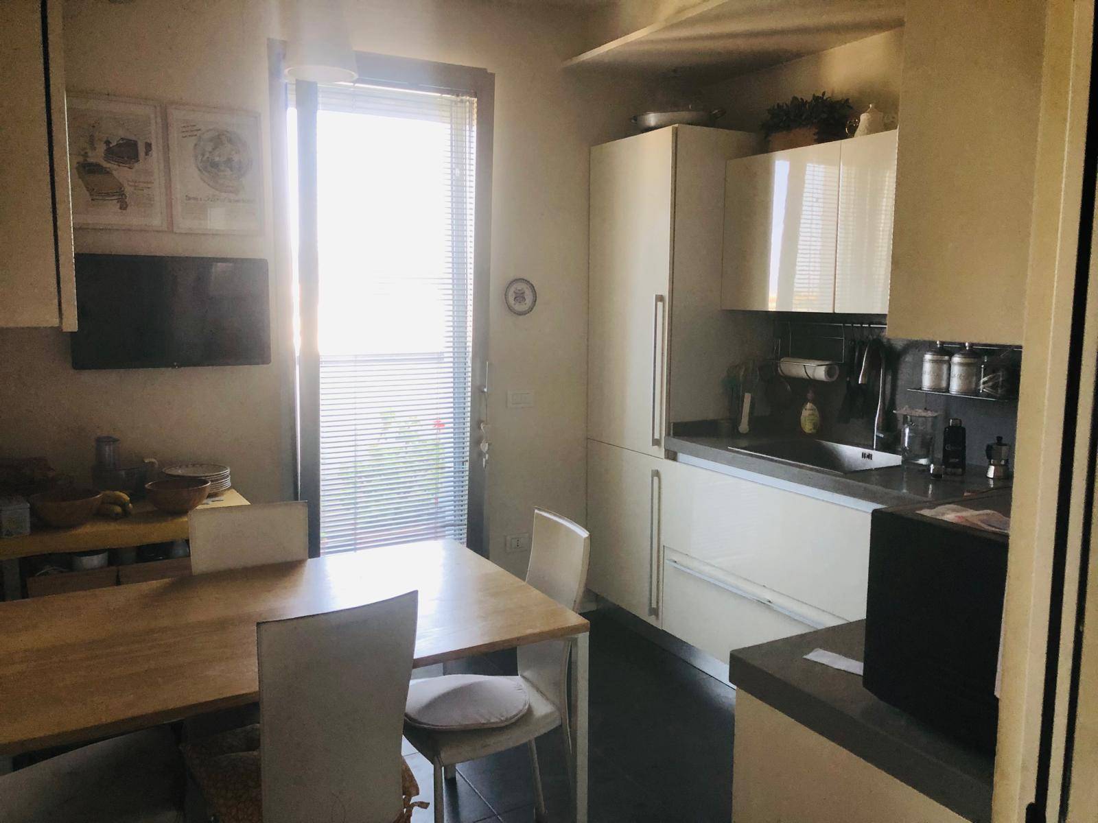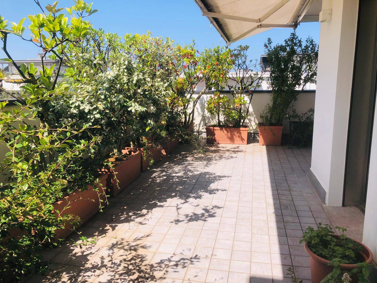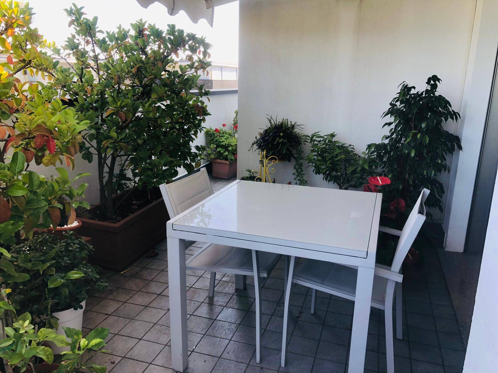 L'abitazione, ottimamente rifinita, si compone di: ingresso su luminoso salone con zona pranzo ed accesso diretto al grande terrazzo loggiato vivibile, cucina abitabile con accesso al terrazzo, disimpegno, camera matrimoniale, camera doppia con accesso al terrazzo loggiato, cameretta/studio con accesso allo stesso terrazzo, 2 bagni completi di cui uno con vasca e uno con doccia entrambi con accesso al terrazzo.