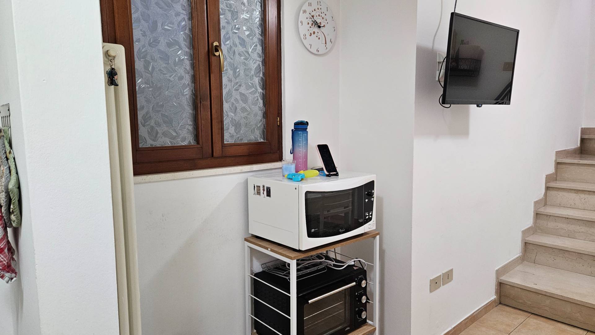L'immobile, con esclusivo ingresso indipendente, ben tenuto e si compone di: ingresso su luminosa sala con angolo cottura e accesso al balcone e al giardino, camera matrimoniale con balcone e bagno finestrato al piano terra; da comoda scala interna possibile accedere al piano seminterrato un ampio locale ad uso taverna comunicante con il garage, completo di bagno e attacco lavatrice.