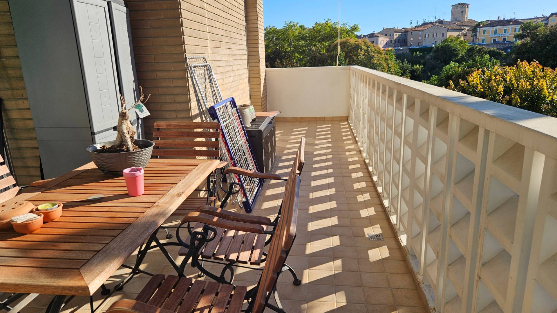 L'abitazione, ristrutturata con materiali di pregio, si compone di: ingresso su ampia e luminosa sala con accesso diretto al grande terrazzo vivibile, cucinotto con accesso al balcone, 2 camere matrimoniali, una delle quali con accesso al terrazzo, bagno finestrato con doccia e ripostiglio/lavanderia.