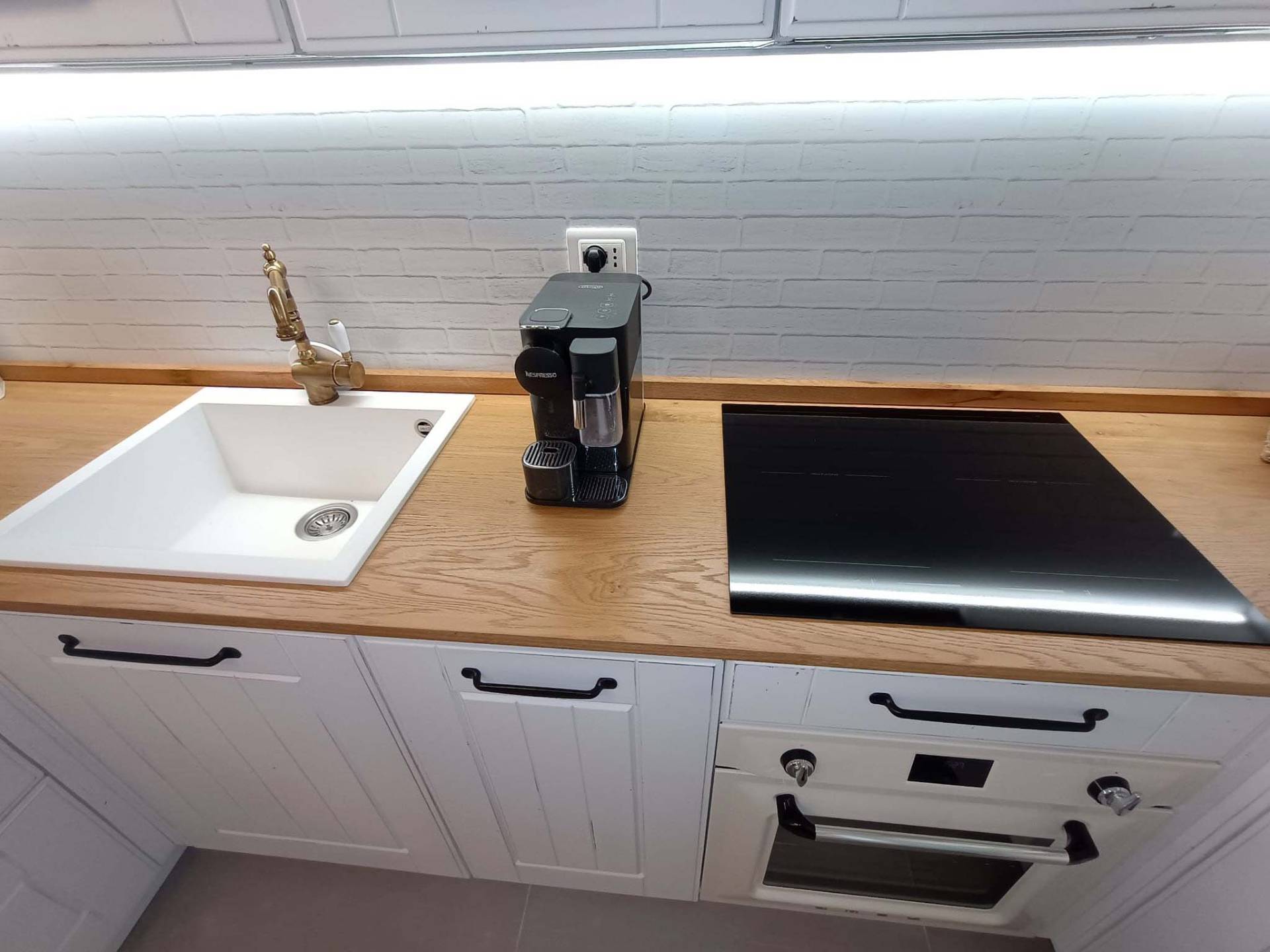 La cucina realizzata su misura e parte del mobilio sono disponibili all'acquisto.