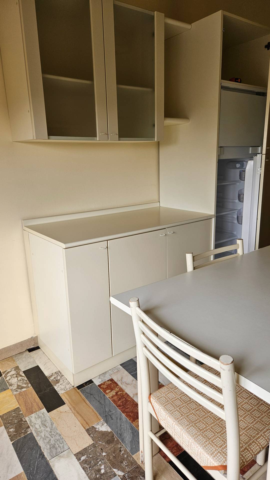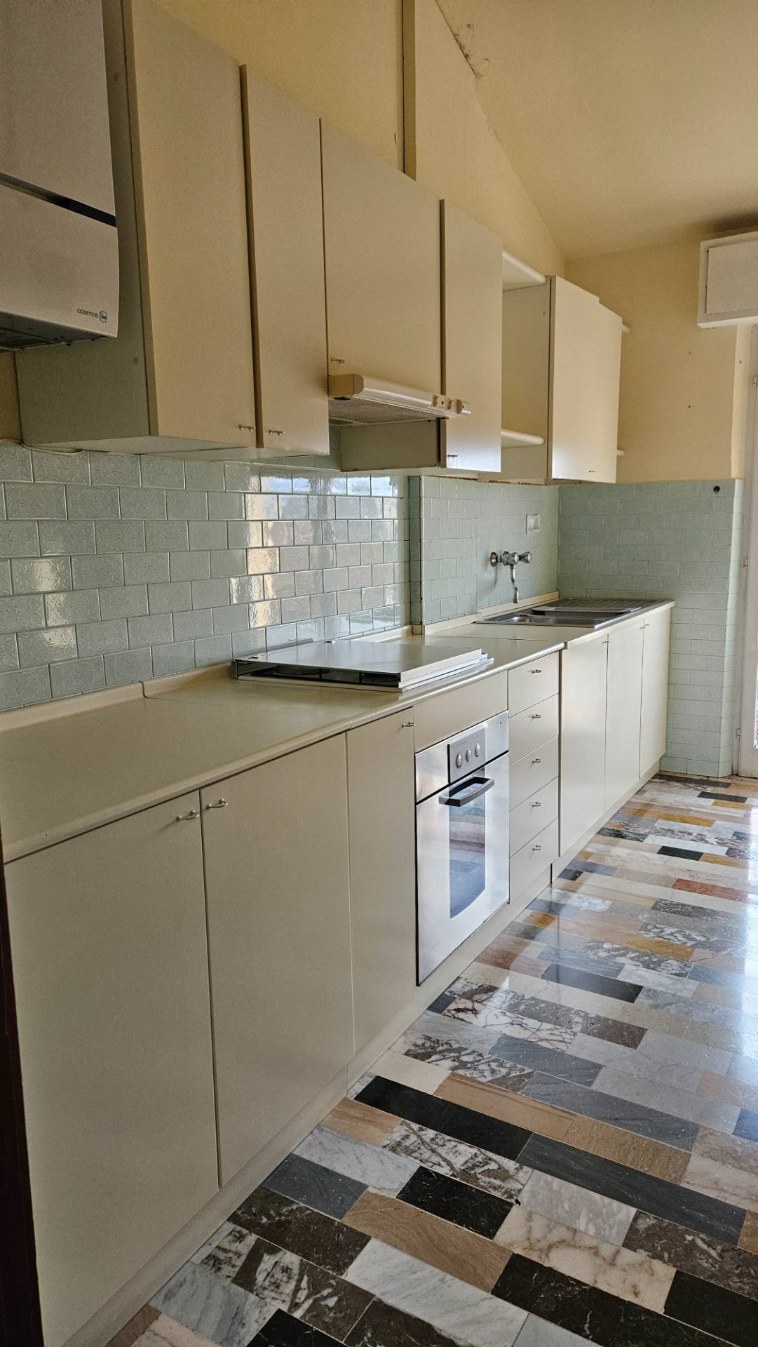 Pavimenti zona giorno in marmo originale, porte ed infissi in legno.