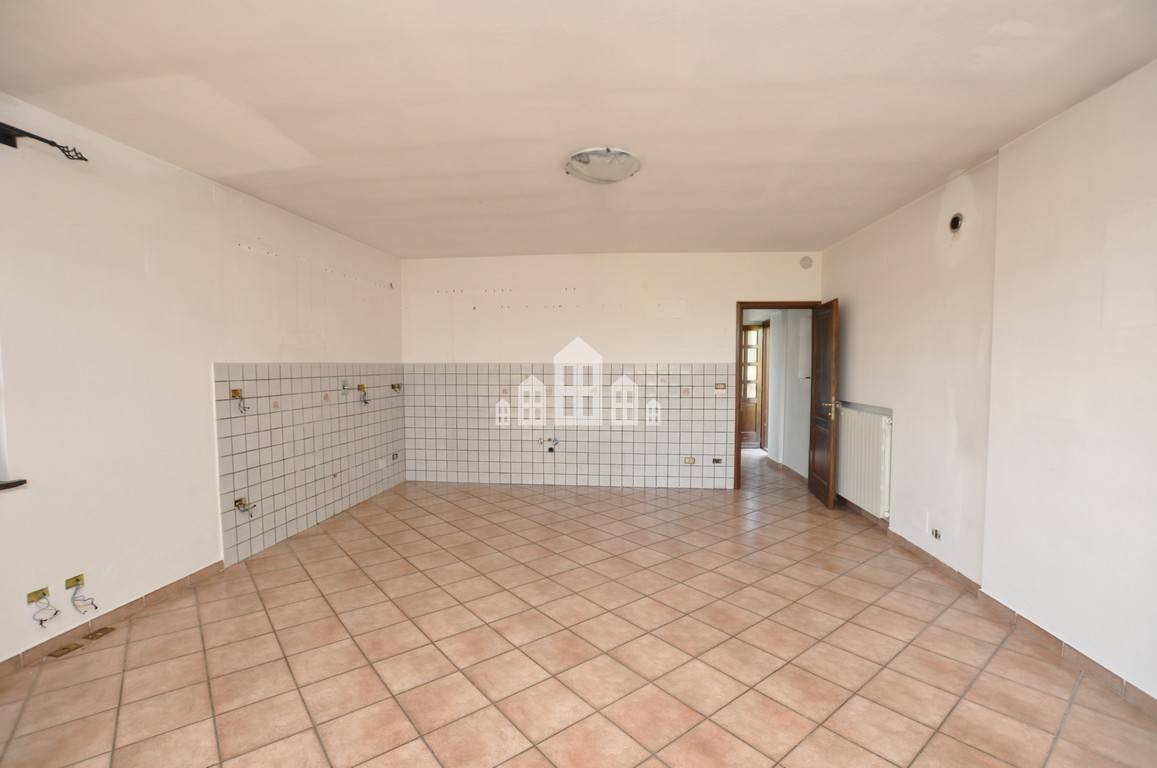 Il lungo disimpegno collega il soggiorno con cucina a vista, alle due camere da letto e al bagno, dotato di doccia.