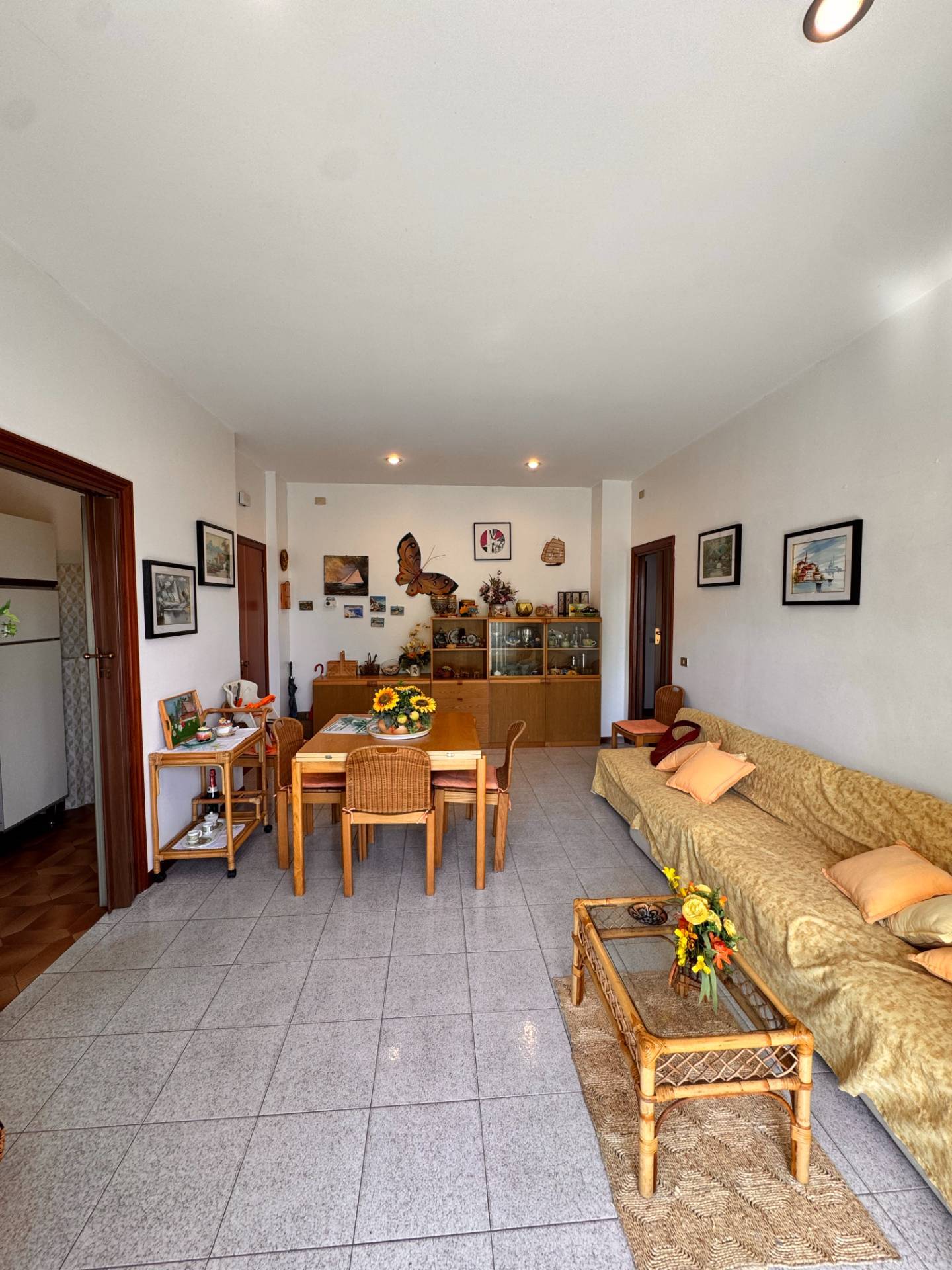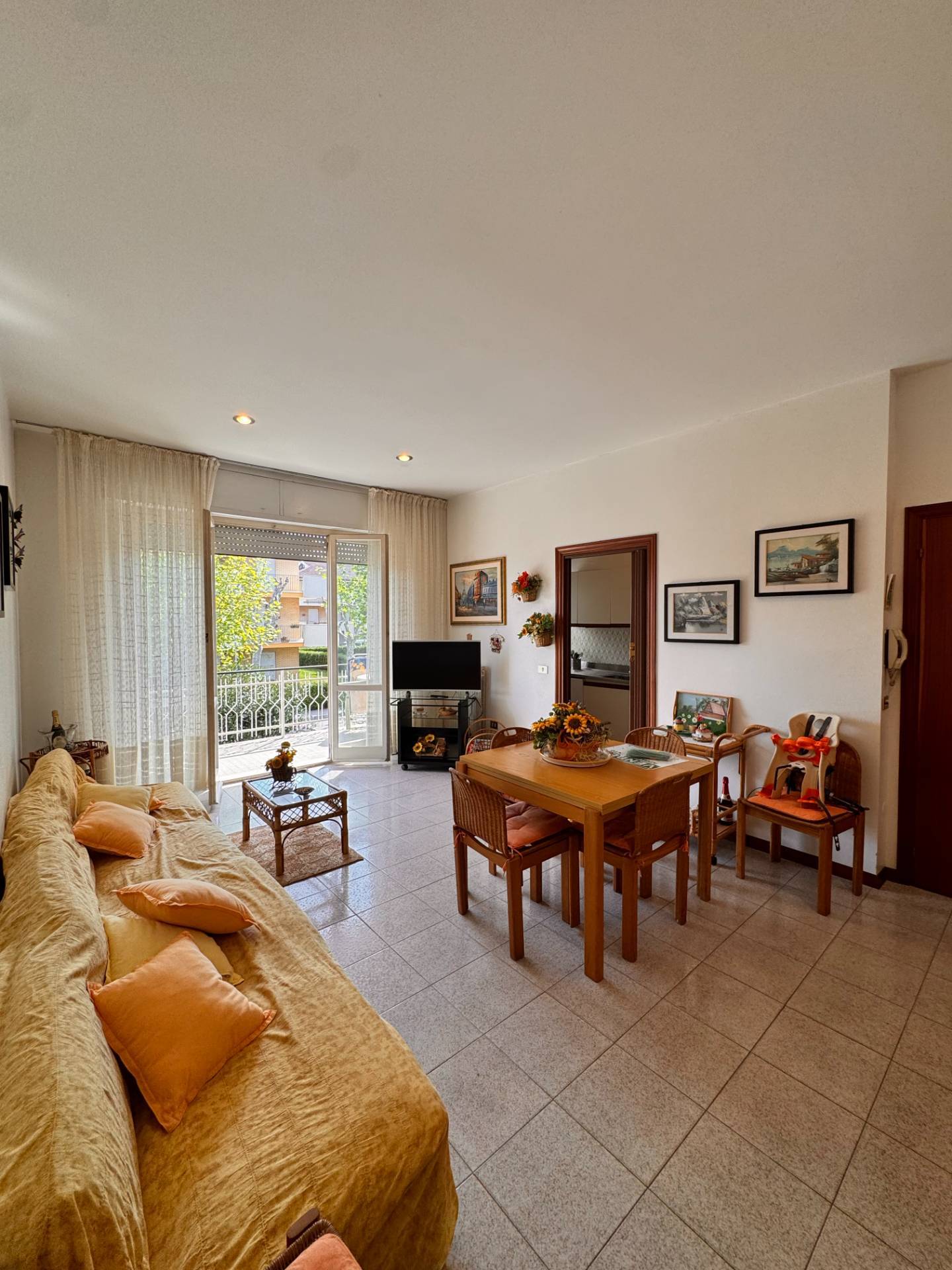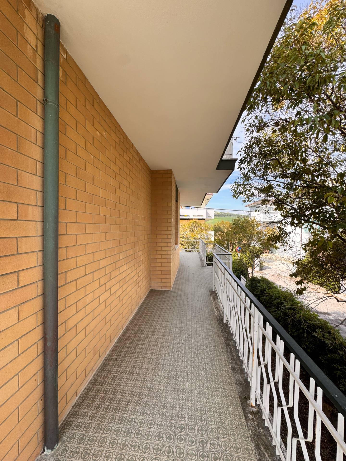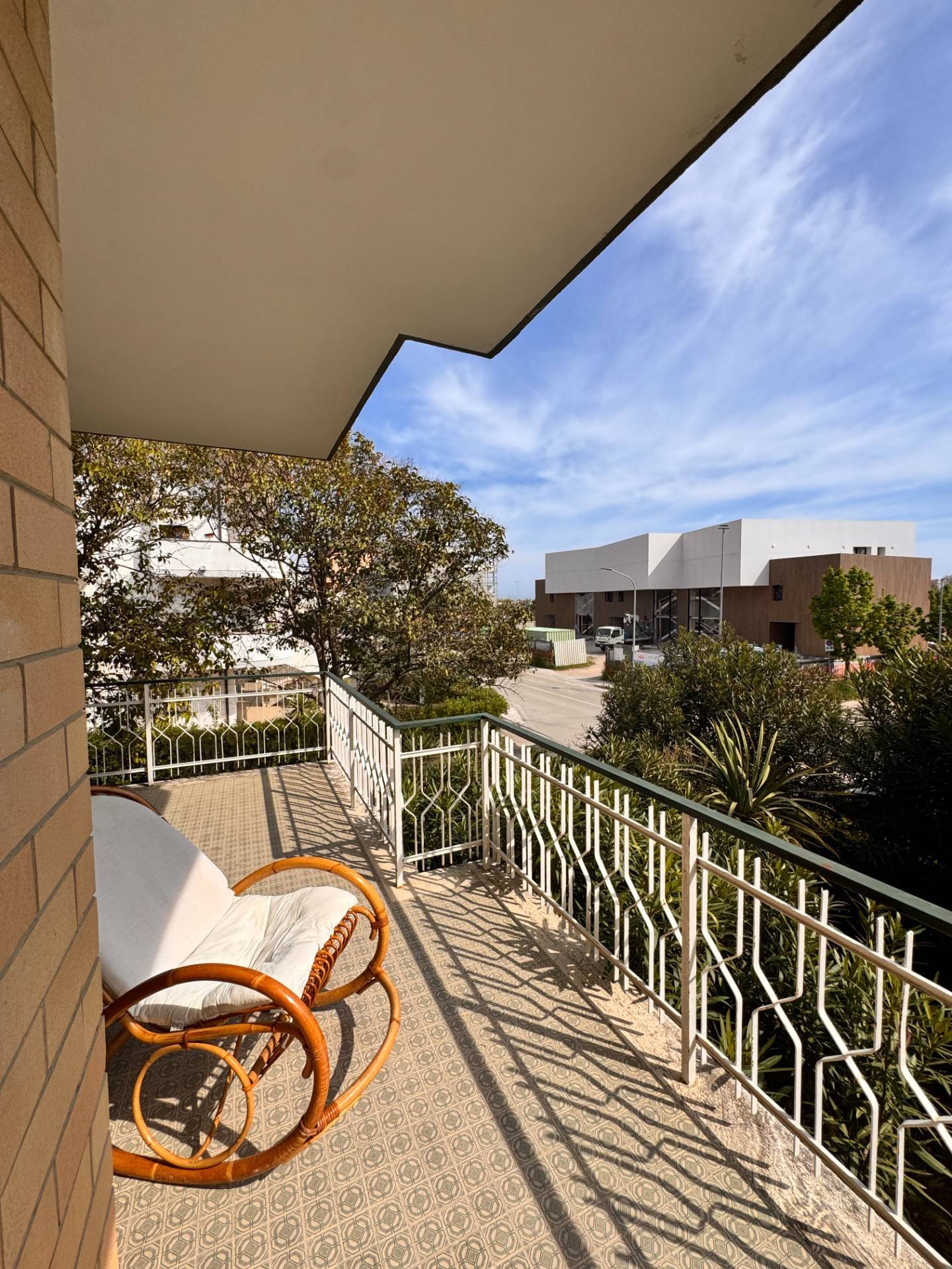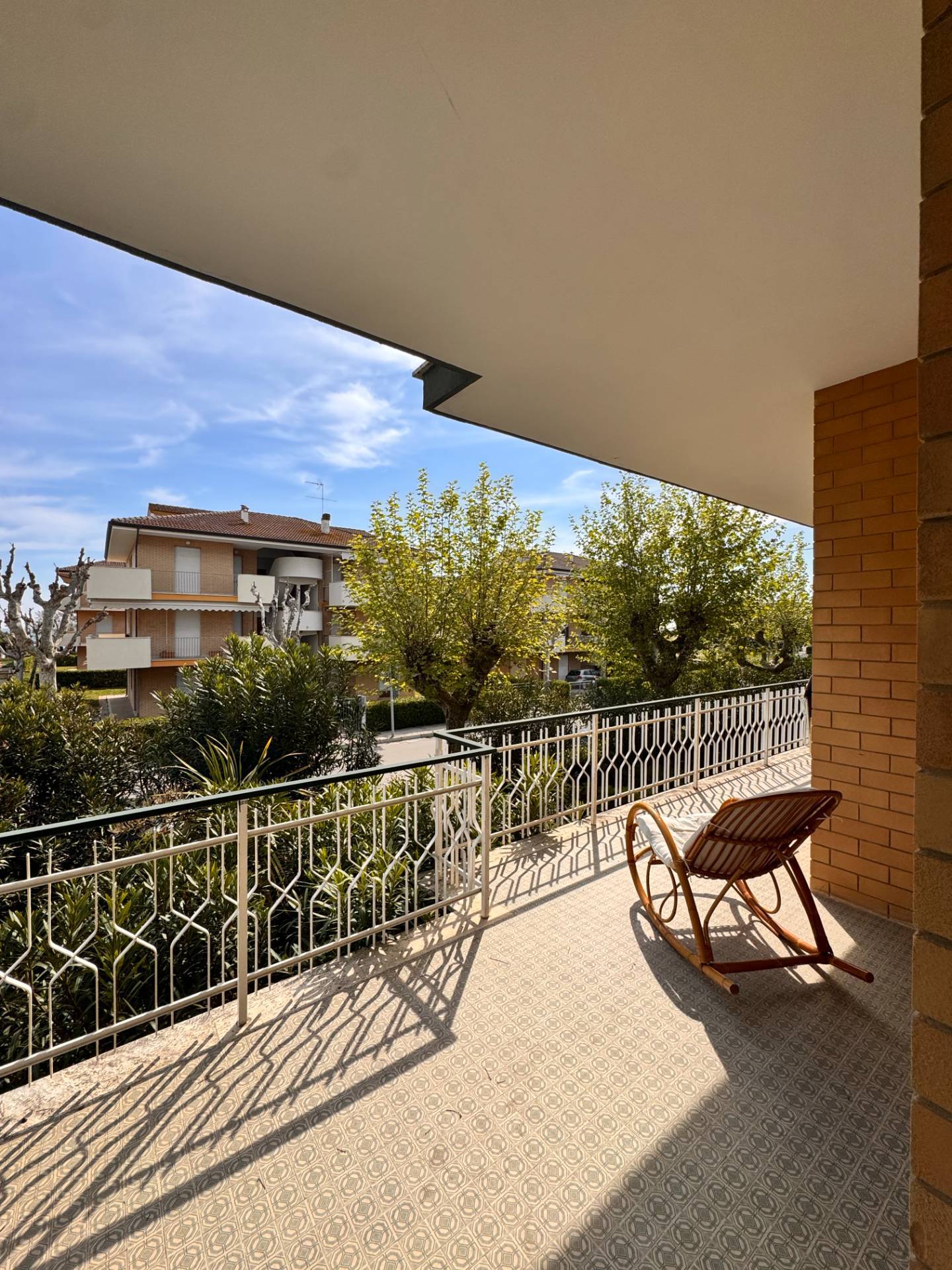 L'ampio e luminoso appartamento fa parte di un piccolo condominio di sole sei unit abitative sito in terza fila mare, sotto la ferrovia, nella zona residenziale di Lido di Fermo.