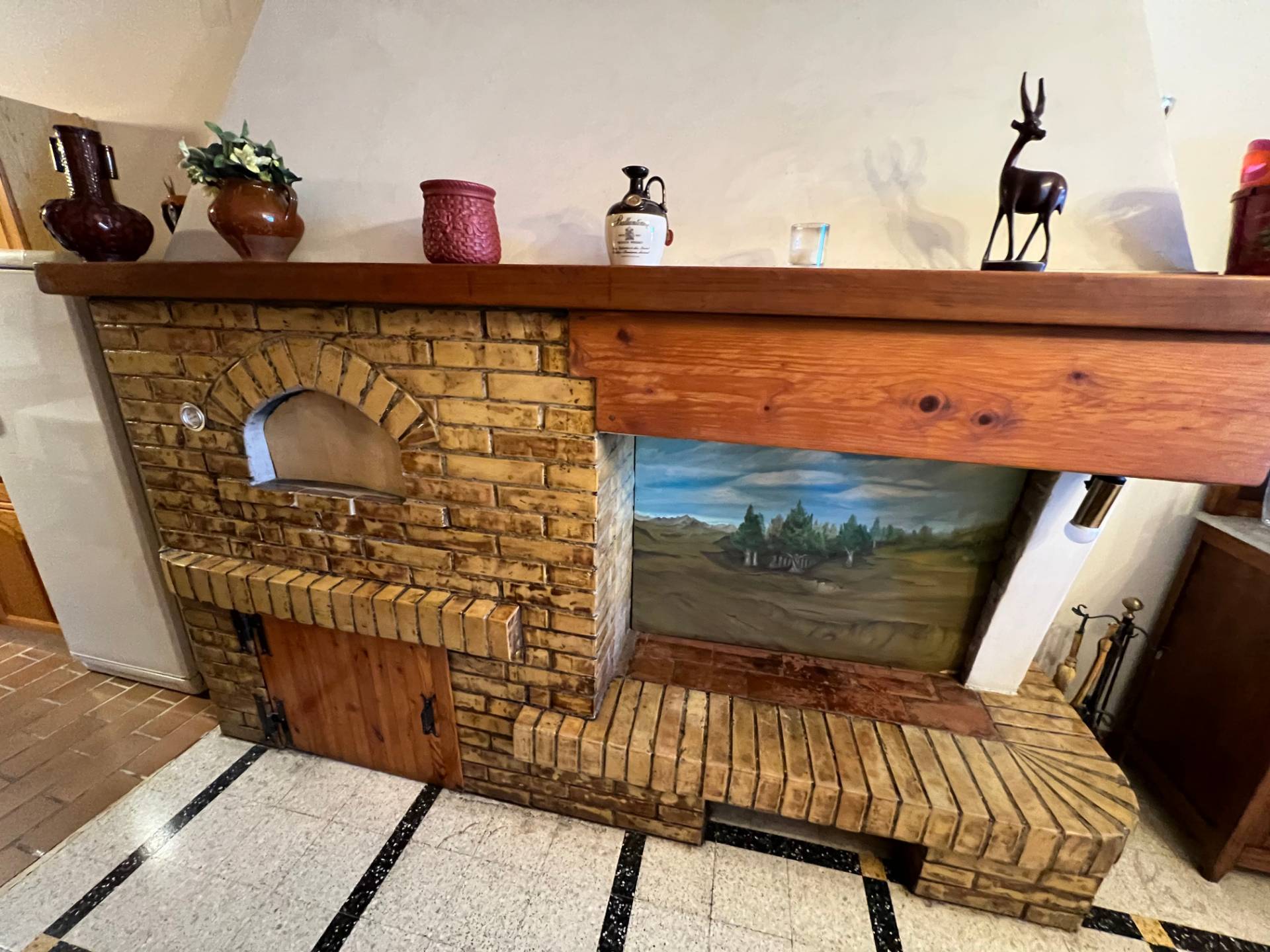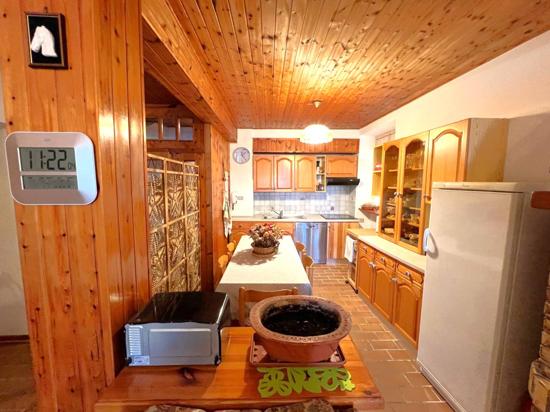 La zona giorno dotata di un pratico angolo cottura e forno a legna.