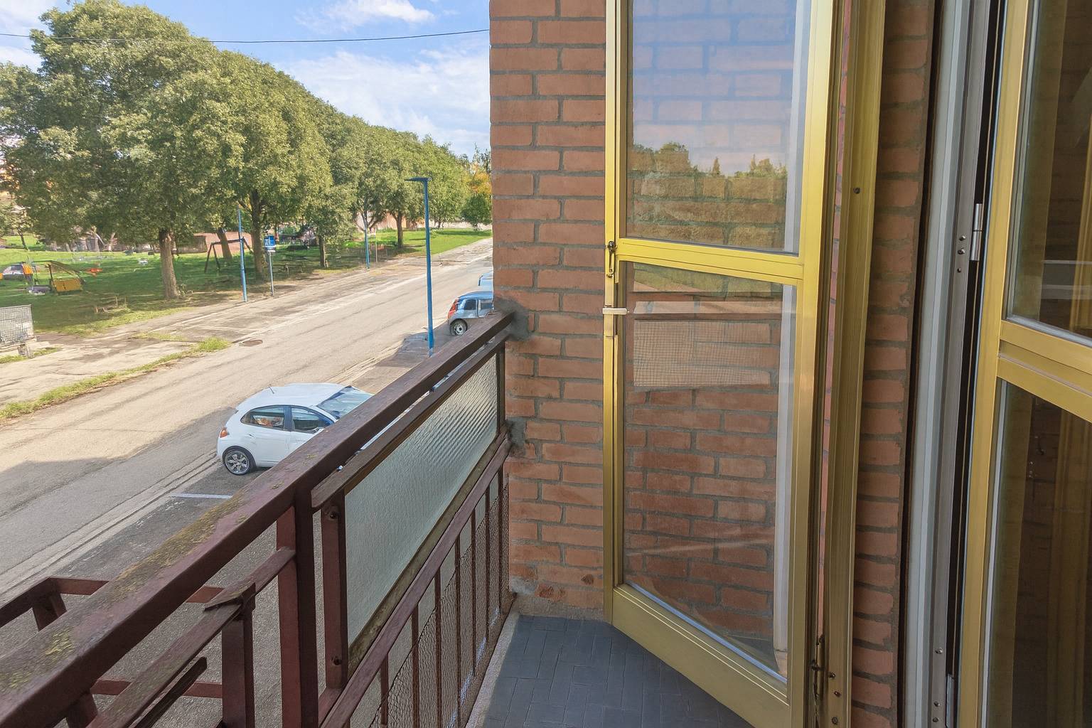 Dalla cucina e dal soggiorno possibile accedere al balcone principale, di dimensioni generose e perfetto per momenti di relax all'aperto.