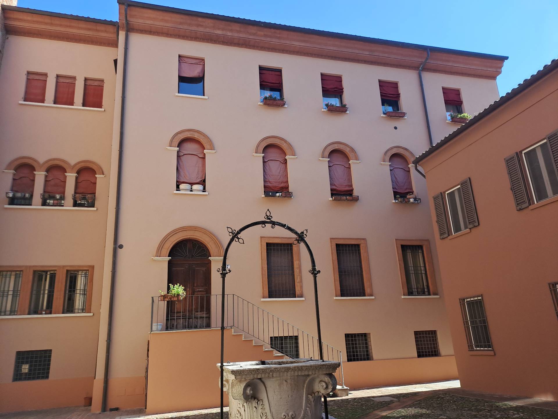 Appartamento in vendita a Ferrara, in posizione centralissima adiacente via De Romei, libero a rogito, inserito in piccola palazzina di sole quattro unit all'interno di un importante immobile di interesse storico risalente al 1500. L'appartamento posto al primo piano ed composto da un ingresso,la sala-soggiorno, una cucina abitabile, nella zona notte due camere da letto, un disimpegno con armadio, due bagni.