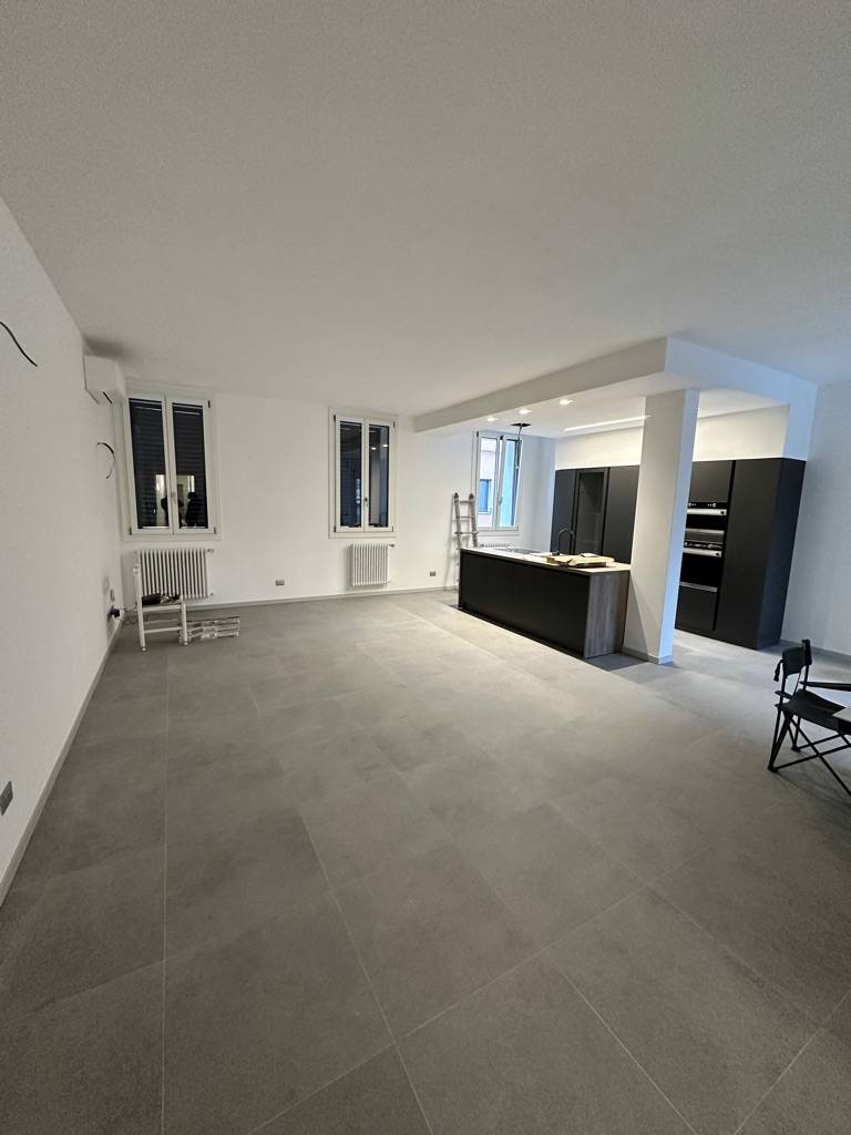 Sito al piano primo senza ascensore, nella splendida Via Cosme' Tura, appartamento di nuova ristrutturazione di circa 160 mq composto da ingresso, salone open space con zona pranzo e cucina a vista.