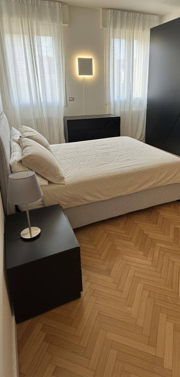 Sito al piano primo senza ascensore, nella splendida Via Cosme' Tura, appartamento di nuova ristrutturazione di circa 160 mq composto da ingresso, salone open space con zona pranzo e cucina a vista.