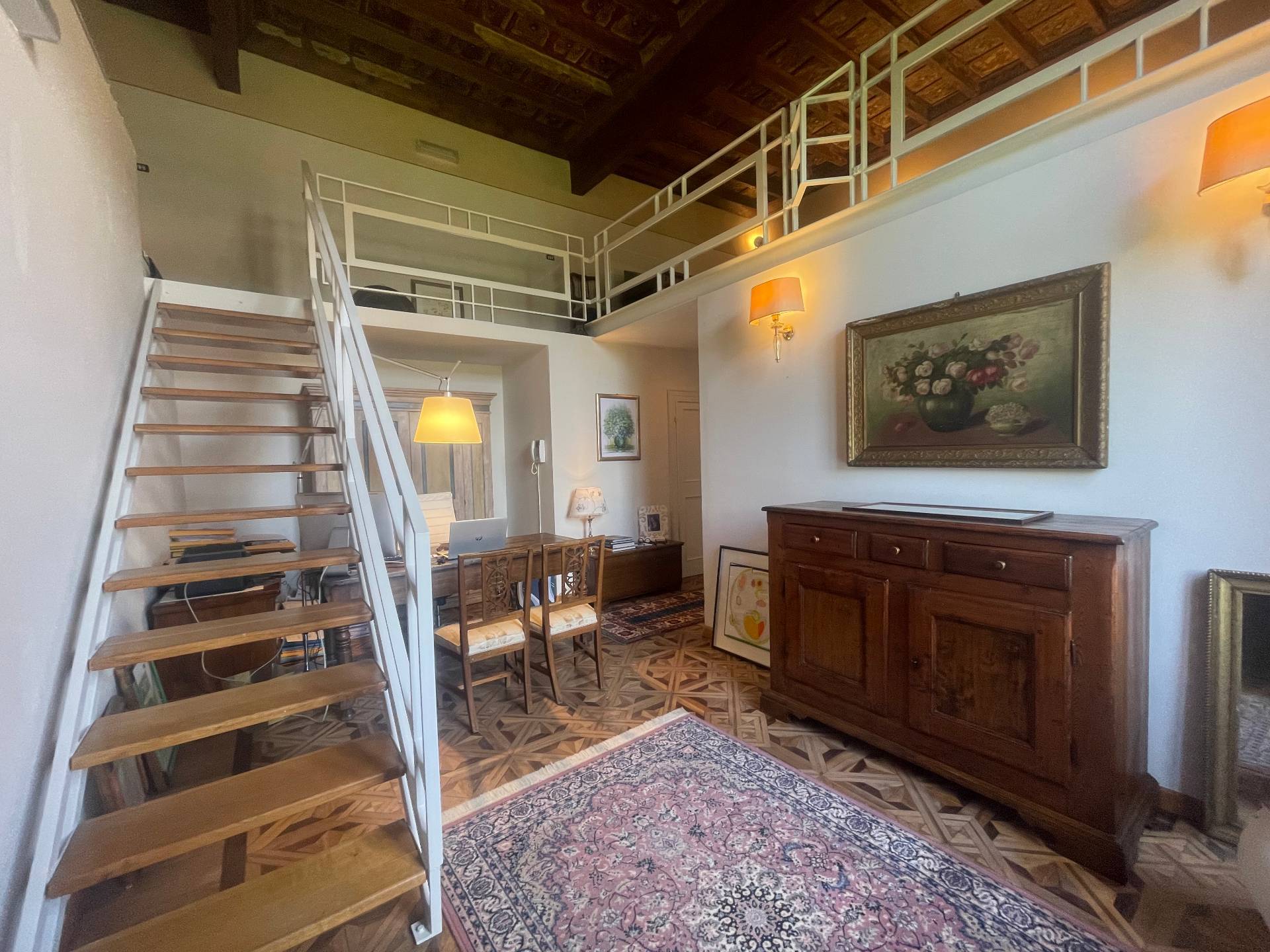 Disposto prevalentemente su unico livello con soffitti affrescati e solai lignei decorati, lappartamento si compone di: ingresso con scala a vista che accompagna a due soppalchi da poter usare come zona studio o camere da letto aggiuntive.