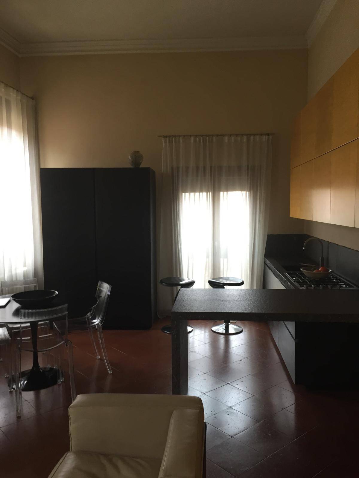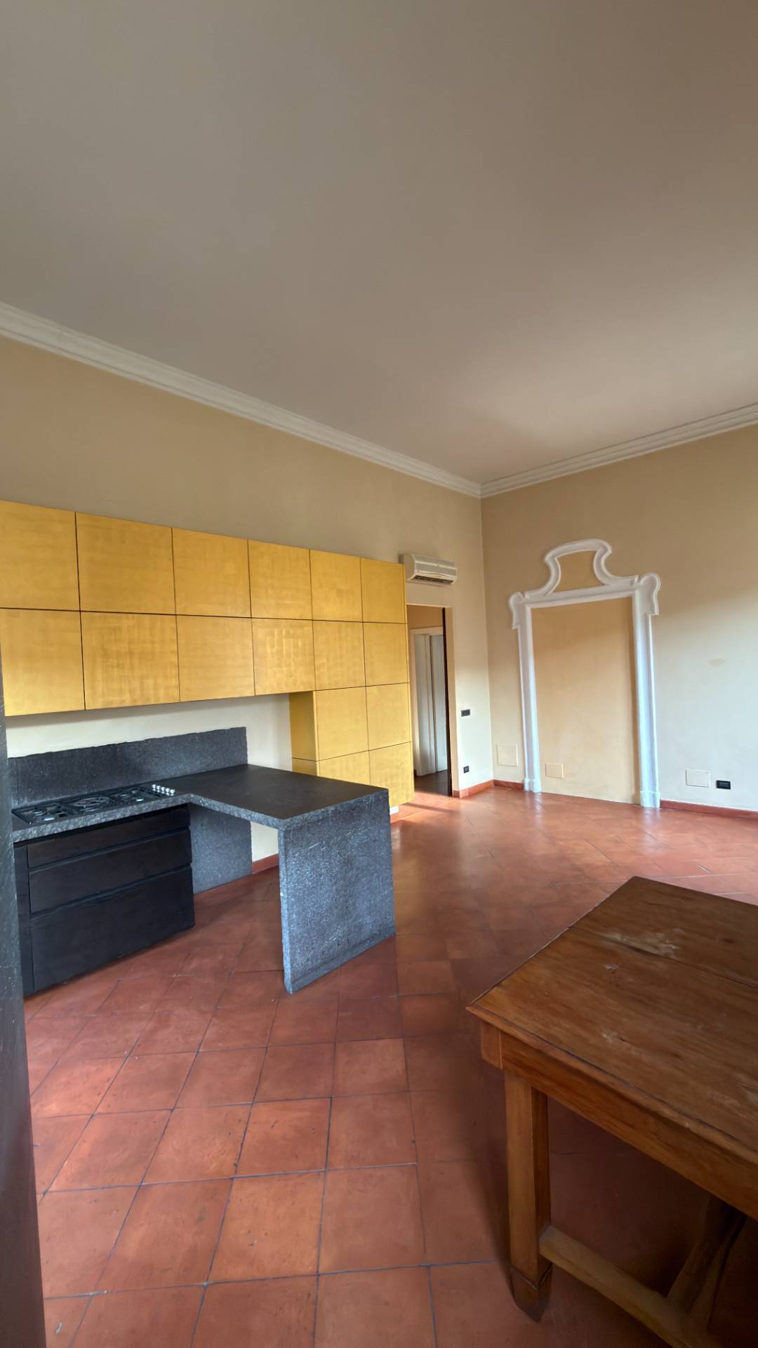 Si trova al primo ed ultimo piano nobile, rivolto a sud, e gode quindi di una straordinaria luminosit e di una splendida vista aperta sui tetti della citt. Lingresso conduce a un salotto con cucina a vista, esposta a mezzogiorno, impreziosita da una cucina di pregio completa di elettrodomestici.