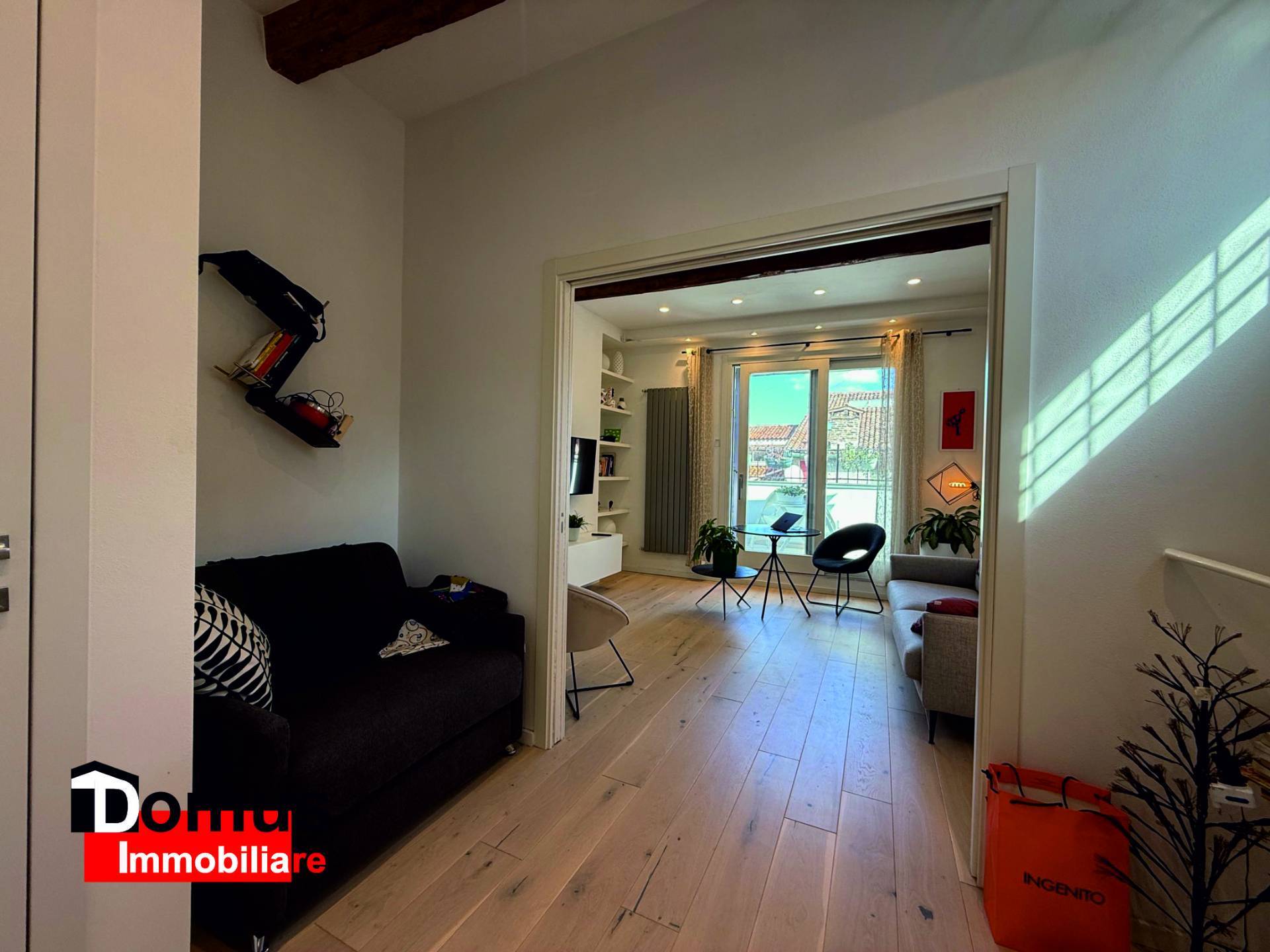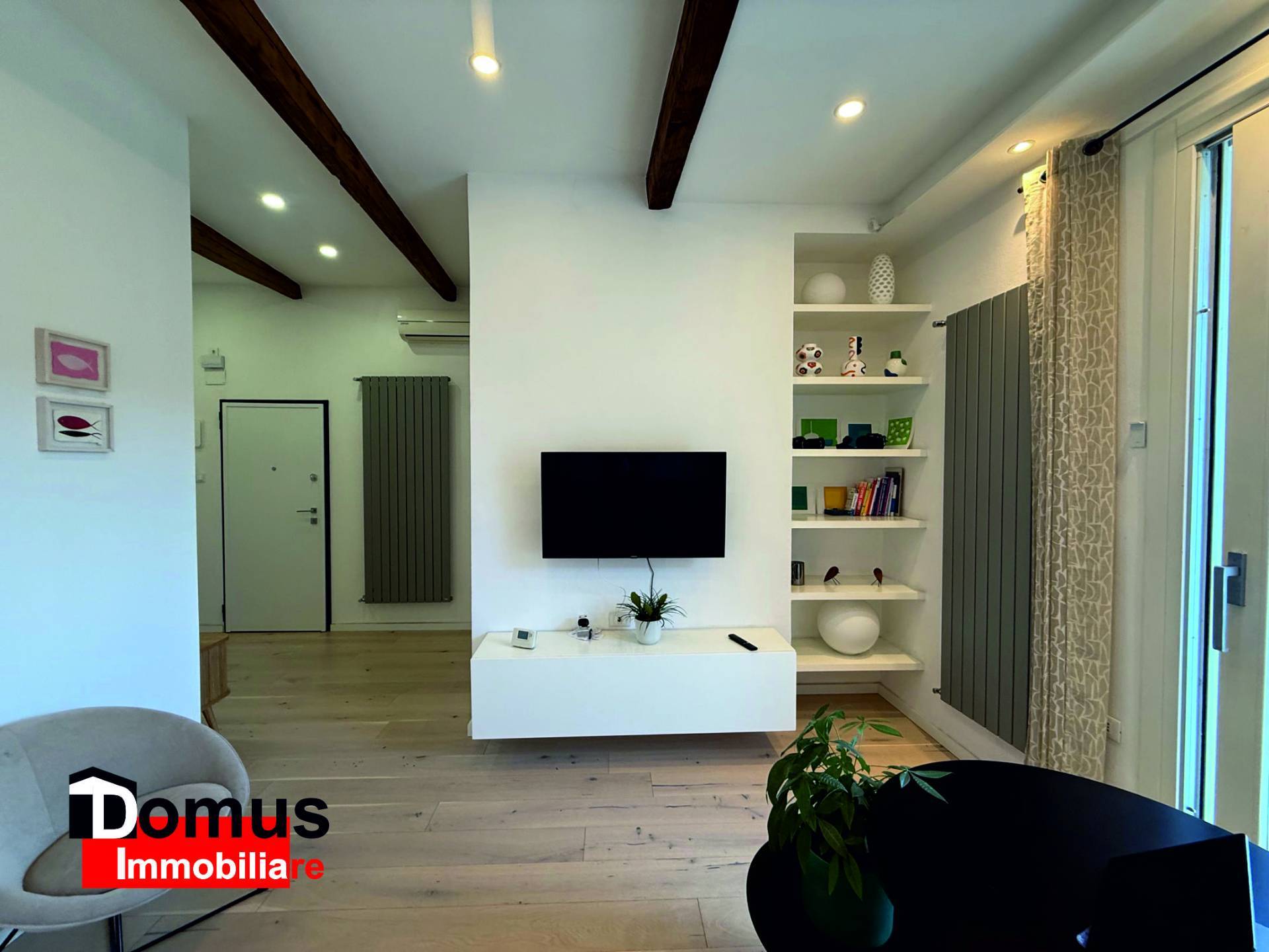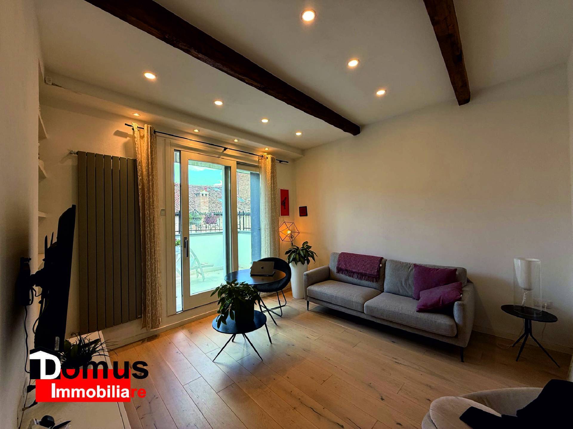 L'appartamento conta di finiture ed impianti di pregio, parquet, travi a vista, climatizzazione con pompa di calore e caldaia a condensazione.