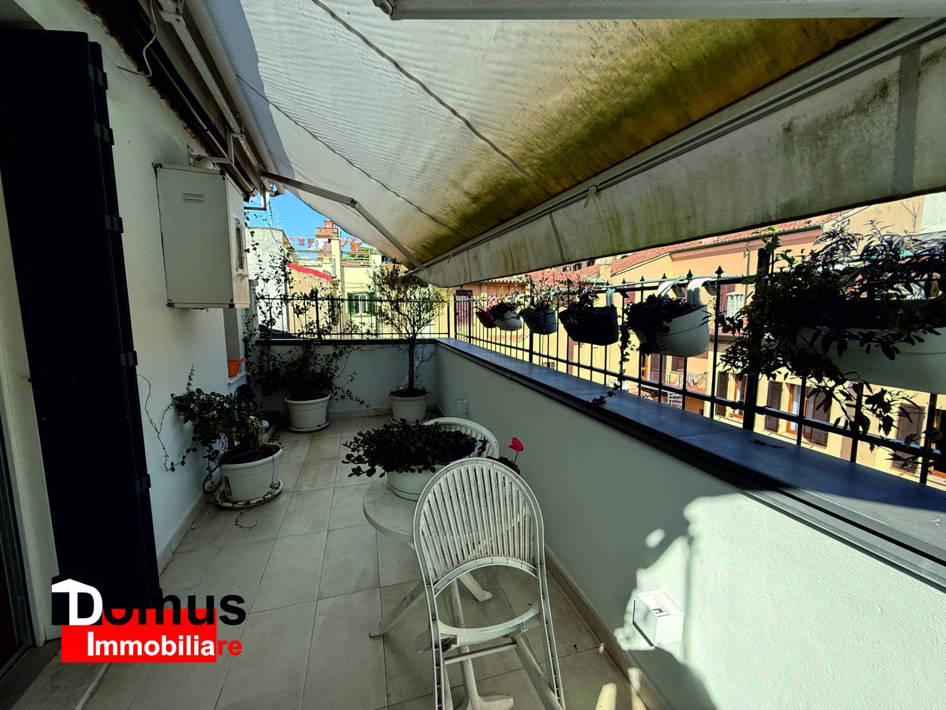 La terrazza esclusiva, dotata di tendone ombreggiante motorizzato, permette di gustare, nella totale privacy, la tranquillit del centro storico.