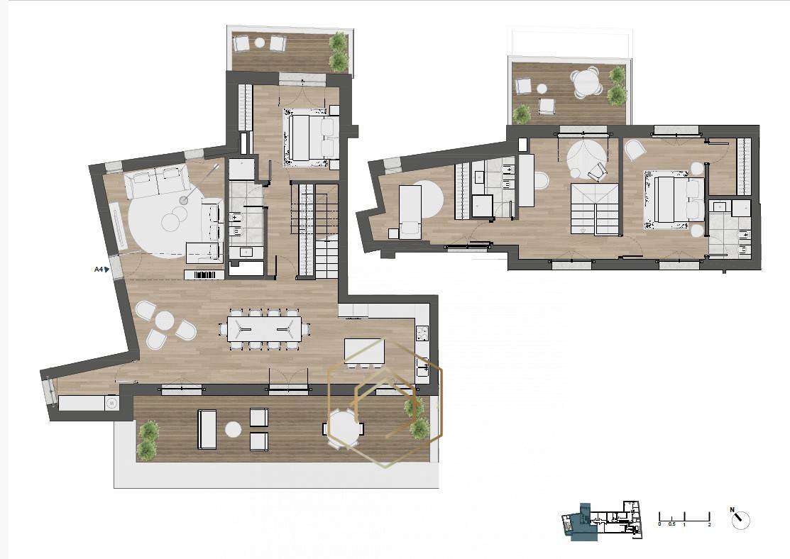Due unit attico disponibili all'interno del Palazzo Etienne, le unit abitative si distinguono per la loro grande terrazza panoramica, che pu essere adibita a zona relax.
