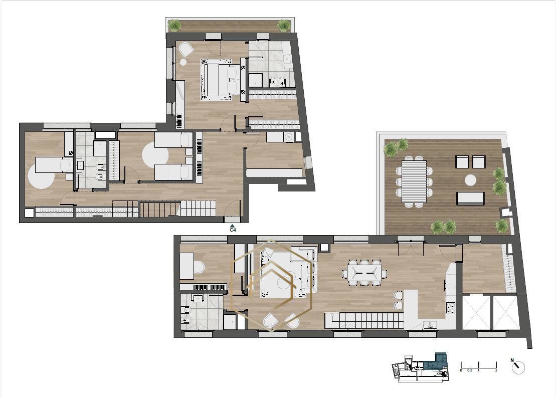 La soluzione perfetta per chi ricerca ambienti dinamici, dalle grandi metrature, soprattutto per le famiglie numerose che desiderano spazi funzionali e confortevoli, adatti a tutte le esigenze, ma nello stesso tempo dallo stile moderno ed elegante in classe energetica A. Attico 4A: L'immobile si sviluppa su due livelli di mq 244 commerciali, al quarto piano si trova l'ingresso che conduce ad un ampio soggiorno, affiancato da una spaziosa e luminosa sala da pranzo con cucina a vista e accesso alla grande terrazza con affaccio su Piazza Saint Etienne.