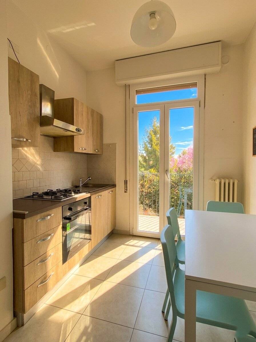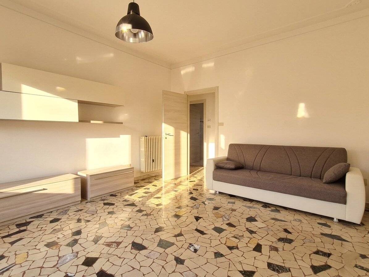 Ampio ingresso, sala con bella esposizione a sud-ovest, cucina separata abitabile con balcone; disimpegno di collegamento con le due camere da letto (M+S) ,comodo ripostiglio e bagno moderno, finestrato e con box doccia.