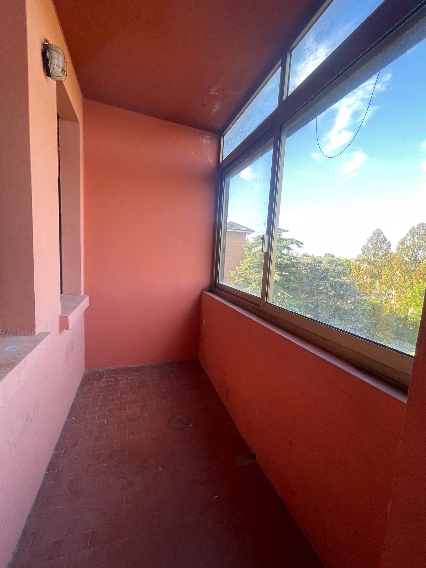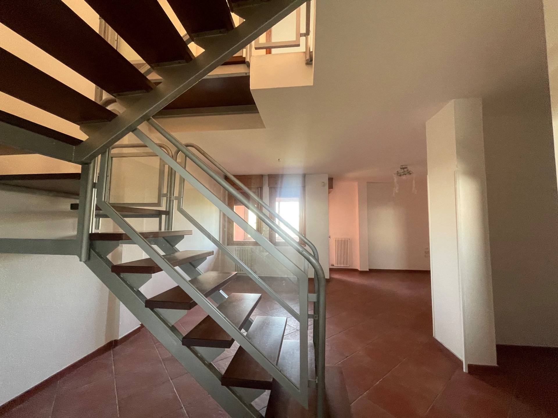 Appartamento in vendita a Ferrara, inizio Via Pomposa adiacente le mura della citt. Sito al quarto ed ultimo piano servito da ascensore e dotato di doppio ingresso, sia dalla via Chendi che nella Via Pomposa, vendiamo luminoso appartamento disposto su due livelli composto da: ingresso ampio soggiorno con zona pranzo e cucina a vista, bagno finestrato, balcone.