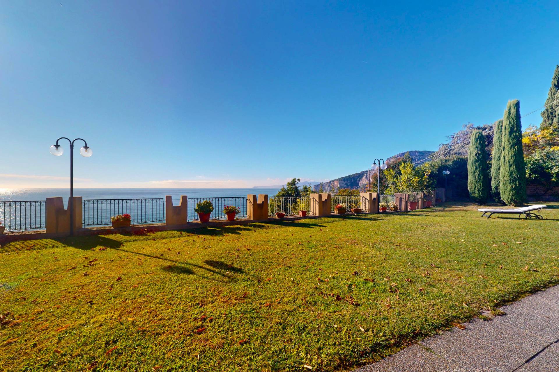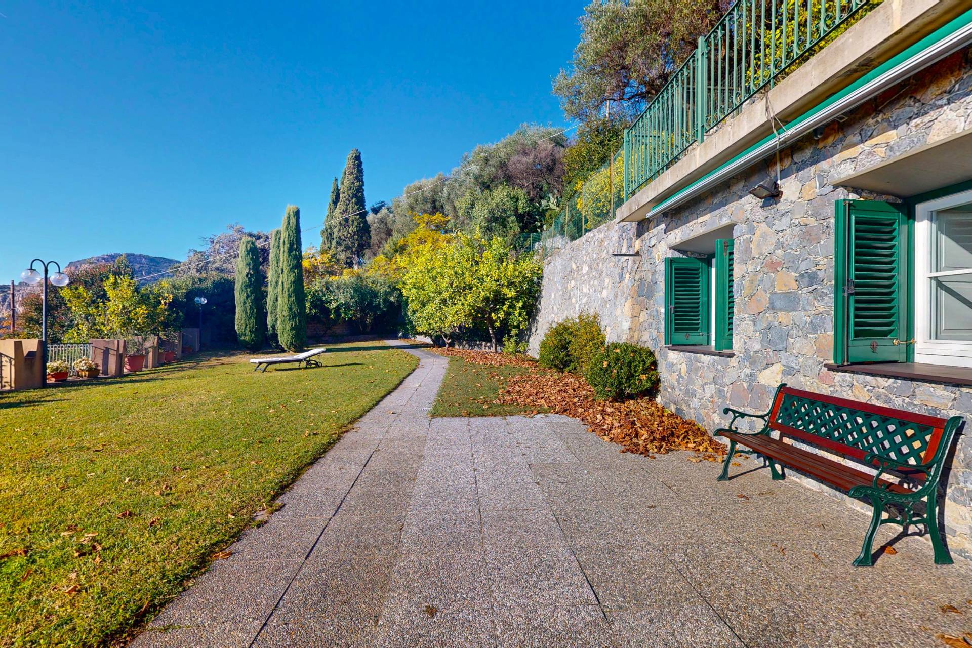 Dal soggiorno si accede al grande giardino privato, ideale per godersi momenti di relax all'aperto o per organizzare cene durante la bella stagione e con una splendida vista sia sul mare che sul Finalese.