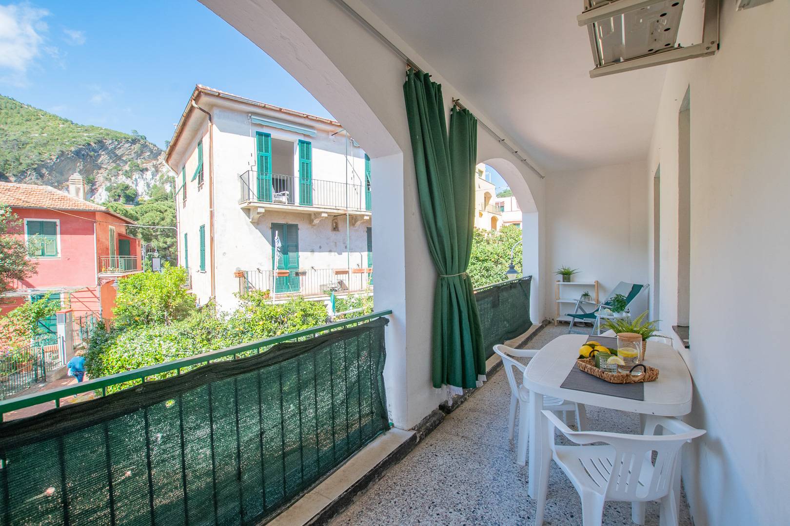 Varigotti: sito all'interno del caratteristico Borgo Saraceno, appartamento a soli due passi dal mare composto da ingresso, soggiorno, cucina abitabile, camera matrimoniale, cameretta, bagno e ampia balconata vivibile.