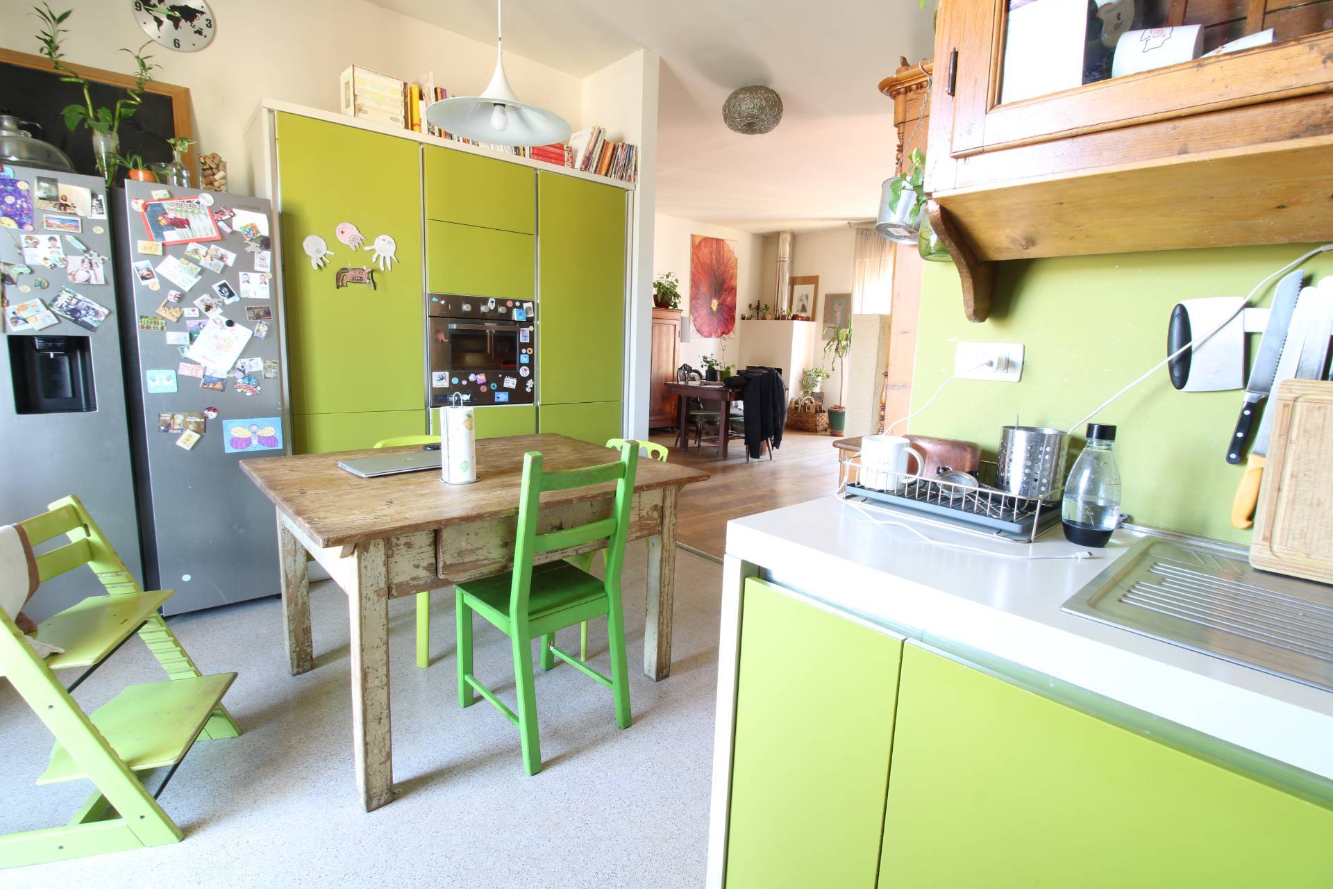 La disposizione degli ambienti razionale e funzionale, con una zona living composta da un ampio soggiorno con cucina a vista, perfetta per trascorrere piacevoli momenti in famiglia o con gli amici.